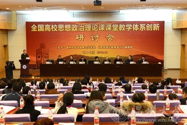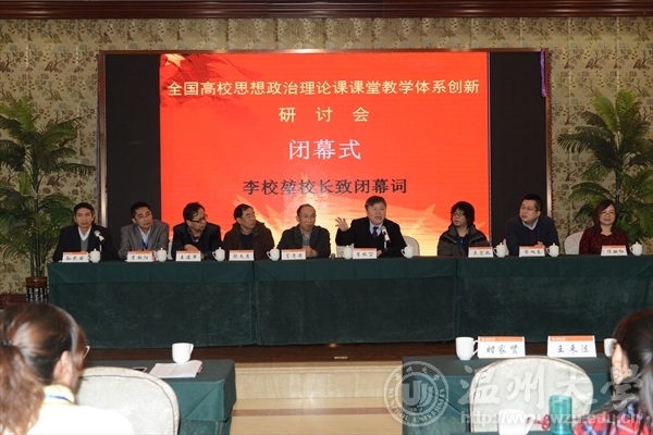 开幕式上,校党委副书记牟德刚致欢迎辞。浙江省教育厅宣教处吴振辉副处长、中共温州市委宣传部胡瑞怀副部长到会致辞。校党委委员、宣传部部长潘玉驹主持研讨会开幕式。 研讨会邀请了中央马克思主义理论研究和建设工程课题组首席专家、教育部高等学校思想政治理论课教学指导委员会副主任、中国人民大学张雷声教授、清华大学肖贵清教授和浙江大学博士生导师、马克思主义学院副院长(主持工作)刘同舫教授作主题报告。 《思想理论教育导刊》副编审蒋旭东全程参加了研讨会,并在大会上作交流发言。 我校马克思主义学院院长孙武安在专题讨论中作《以问题为导向的思政理论课教学改革》专题报告,介绍了近年来我校所进行的“一化六制”的改革探索,受到了与会专家的高度评价,数十所高校纷纷索取我校为学生精心设计并配发的《思想政治理论课学习与实践手册》。下午全体专家全程观摩了我校第三届“溯初杯”思想政治理论知识竞赛的决赛,竞赛教学(包括风采大赛和知识竞赛)更引起了与会专家的格外关注和热议。 13日,与会代表在分组研讨的基础上,进行大会发言和总结。肖贵清教授在闭幕式上高度评价了万象城手机网页版登录入口富有成效的改革探索,并就教学研讨和改革作了精彩点评。 李校堃在闭幕式讲话中充分肯定了学校马克思主义理论学科建设和思想政治理论课教学改革所取得的丰硕成果。他结合自身经历向与会专家代表热情洋溢地介绍了来温州创新创业的优势条件,认为高校创新发展建设需要教学平台、科研平台和产业平台三个“轮子”一起转,温州地处“长三角”、“珠三角”和“海西”三个经济带的交汇处,充满活力,是创业的绿洲。温州人特别富有勇于改革、顽强拼搏、吃苦耐劳的精神。温州的企业老板特别重视党建工作,善于利用马克思主义中国化成果在企业管理发展中发挥特殊作用,也敢于在实践中创新探索适合中国实际的马克思主义新思想新观念。因此,在温州研究马克思主义,具有特殊的社会条件和优势。李校长还热切希望在未来“十三五”时期,万象城手机网页版登录入口能与各位专家学者及各地名校协同合作开展马克思主义理论研究。