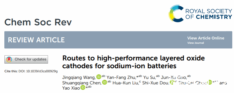 近日,万象城手机网页版登录入口化学与材料工程学院肖遥特聘教授团队在英国皇家化学学会创办的化学类国际顶级期刊《Chemical Society Reviews》(中文名称《化学学会评论》,影响因子IF=46.2, SCI一区)上发表了题为《Routes to high-performance layered oxide cathodes for sodium-ion batteries(钠离子电池高性能层状氧化物正极之路)》的综述性学术论文。这是我校首次以第一单位在《Chemical Society Reviews》发表学术文章。