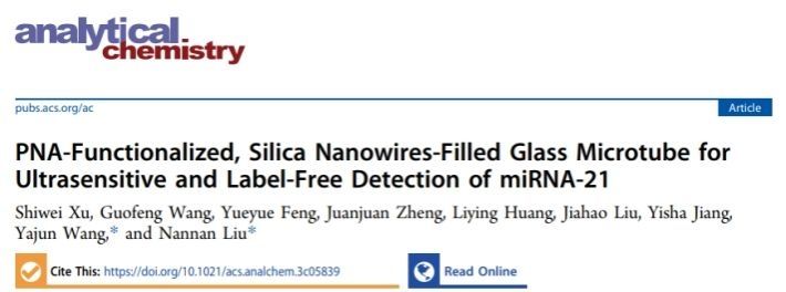 文章链接:PNA-Functionalized, Silica Nanowires-Filled Glass Microtube for Ultrasensitive and Label-Free Detection of miRNA-21, Anal. Chem., 2024, doi: 10.1021/acs.analchem.3c05839