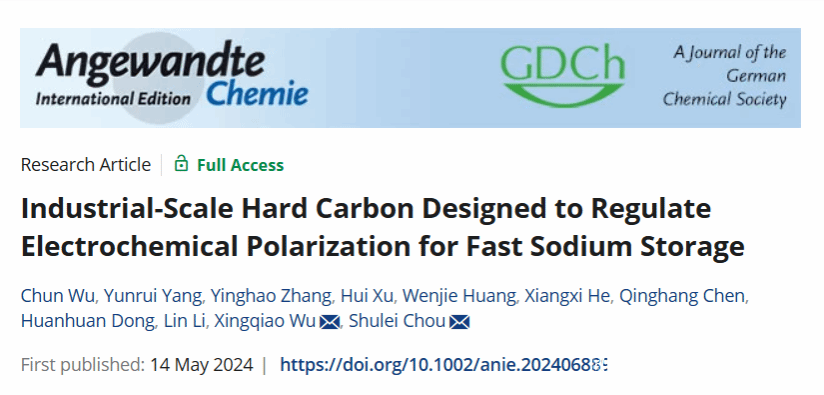 该成果以“Industrial-scale Hard Carbon Designed to Regulate Electrochemical Polarization for Fast Sodium Storage”为题,发表在Angewandte Chemie International Edition上。我院博士后吴春、2021级硕士生杨云锐为论文共同第一作者,侴术雷教授、吴星樵博士为该论文共同通讯作者,万象城手机网页版登录入口为第一通讯单位。相关工作受到国家自然科学基金、浙江省自然科学基金、温州市自然科学基金等资助。