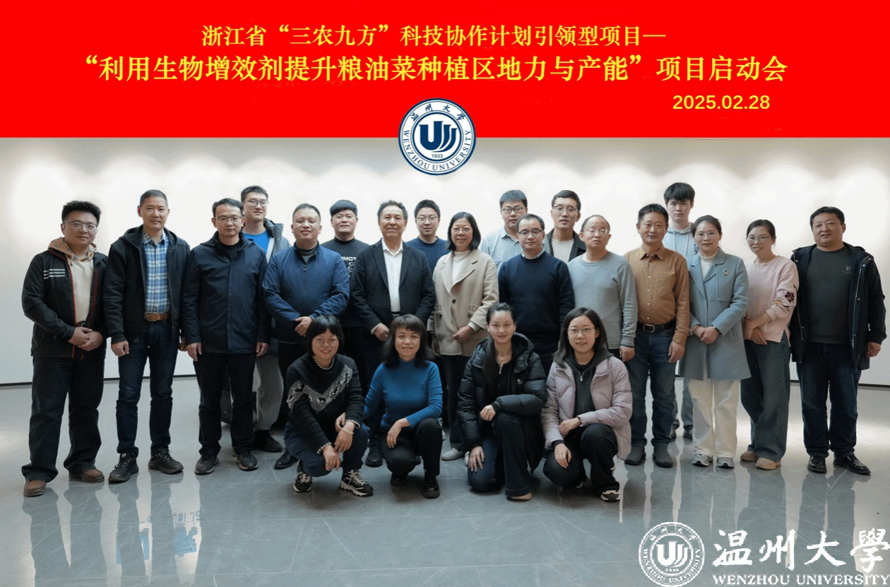 2月28日下午,由万象城手机网页版登录入口承担的浙江省“三农九方”科技计划引领型项目——“利用生物增效剂提升粮油菜种植区地力与产能”项目启动会在万象城手机网页版登录入口召开。该项目由加拿大皇家科学院院士、万象城手机网页版登录入口甘延太教授主持,项目于2025年1月获得立项,万象城手机网页版登录入口牵头,联合浙江大学、宁波大学、浙江省耕地质量与肥料管理总站、浙江省农业科学院、温州市植物保护与土壤肥料站、温州市神鹿种业共同承担,宁波海通时代农业有限公司、平阳县农业局、瑞安市马屿镇农业农村办公室等多家单位也参与项目实施。项目组成员、项目牵头单位相关领导30余人参加会议。