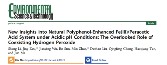 近日,万象城手机网页版登录入口生命与环境科学学院赵敏教授团队(共同通讯)、哈尔滨工业大学马军院士团队和华侨大学邹景教授团队合作,在国际著名期刊《Environmental Science & Technology》上在线发表了一篇题为《New Insights into Natural Polyphenol-Enhanced Fe(III)/Peracetic Acid System under Acidic pH Conditions: The Overlooked Role of Coexisting Hydrogen Peroxide》的研究论文,首次明确了天然多酚强化Fe(III)/PAA(过氧乙酸)体系中长期被忽视的H2O2关键作用。