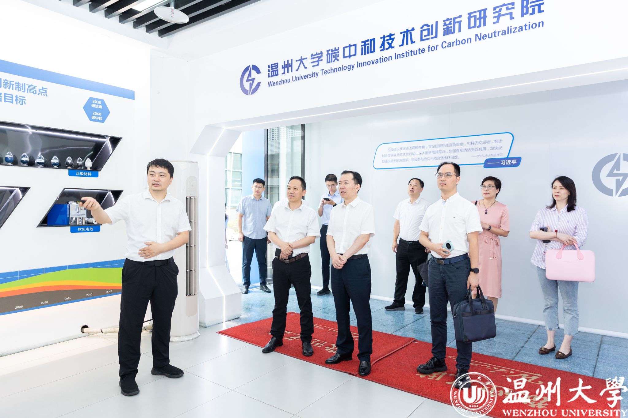 陈仁坚一行实地考察了我校体育与健康学院、碳中和技术创新研究院与碳材料技术研究重点实验室,深入了解温州足球学院与足球运动专业建设、钠离子电池开发、清洁能源技术创新与成果转化等情况。