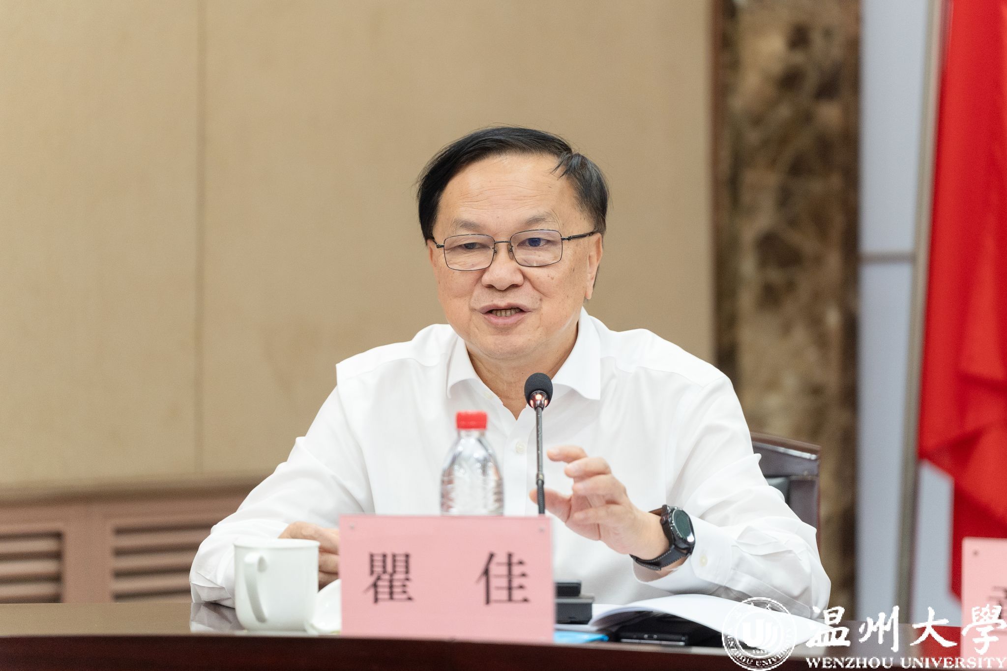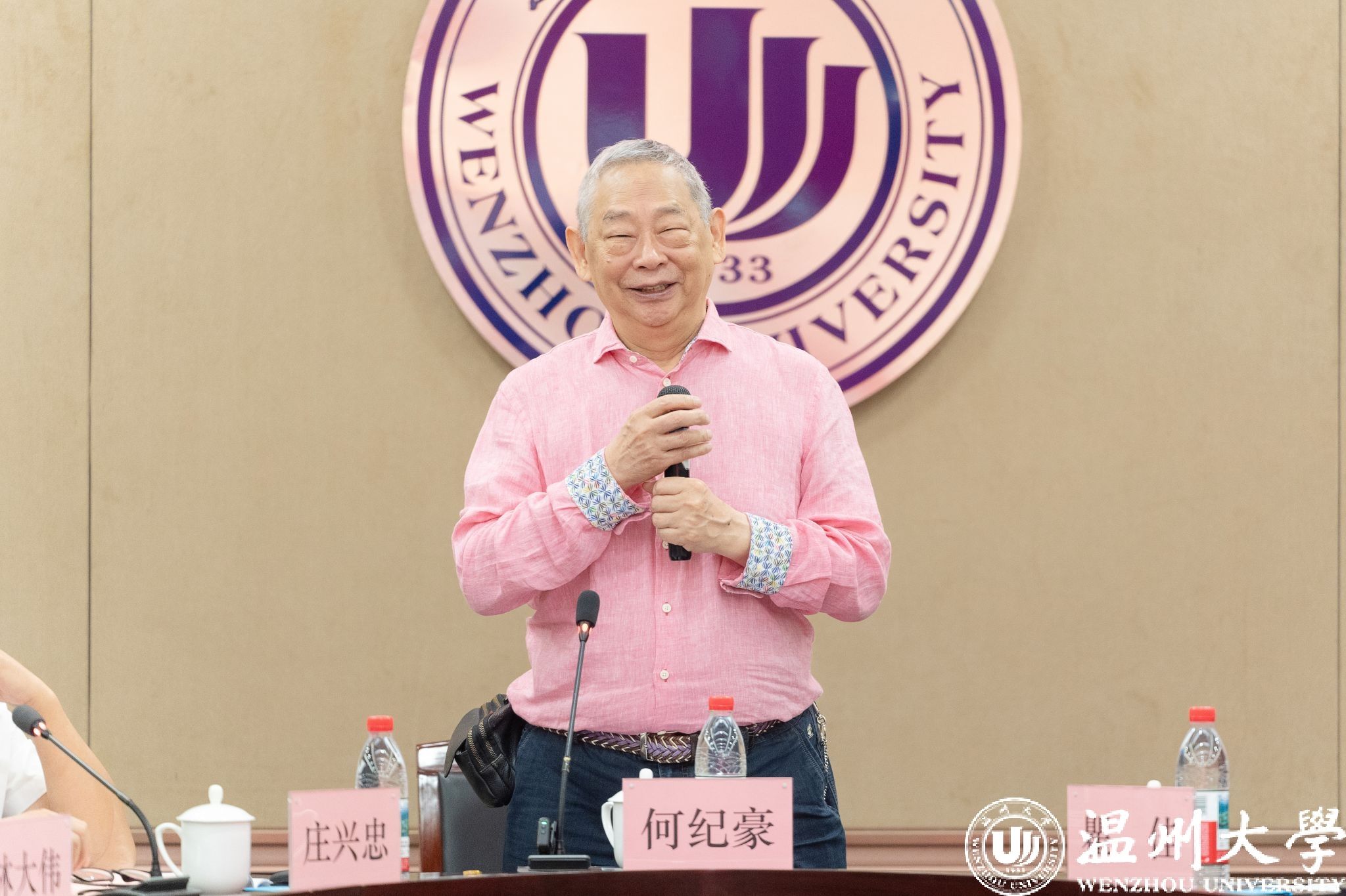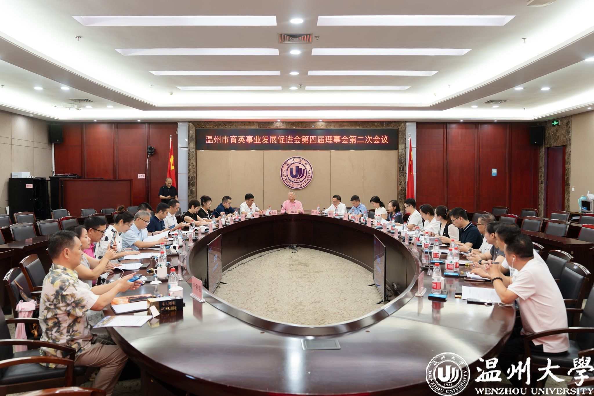 7月22日上午,温州市育英事业发展促进会第四届理事会第二次会议在我校南校区岩松堂白鹿厅召开。理事会顾问、著名慈善家、温籍台胞何纪豪先生,理事会会长瞿佳,业务指导单位温州市委台办联络处处长童景景以及各理事单位代表、何纪豪先生亲友代表出席。会议由万象城手机网页版登录入口党委副书记庄兴忠主持。