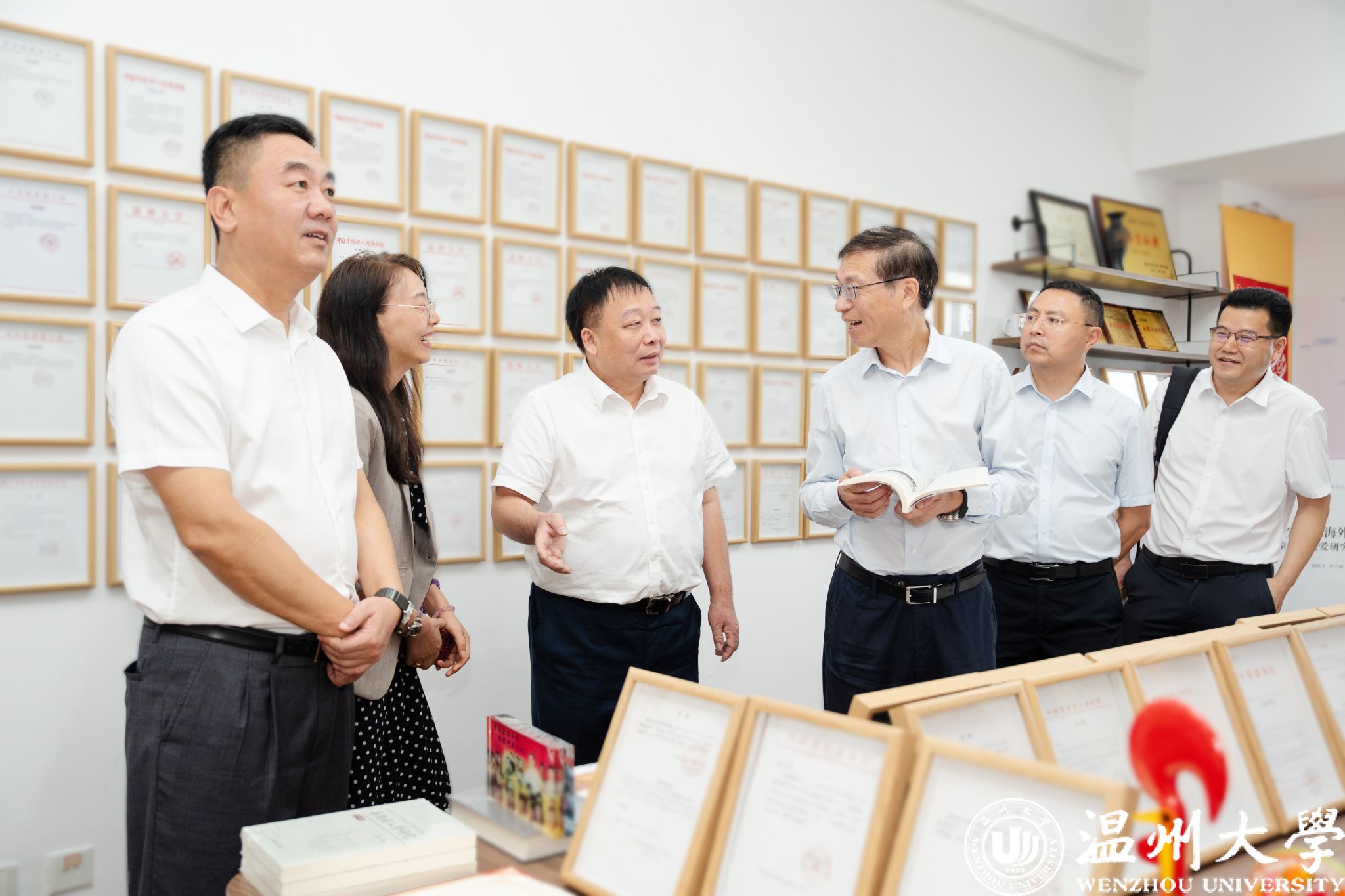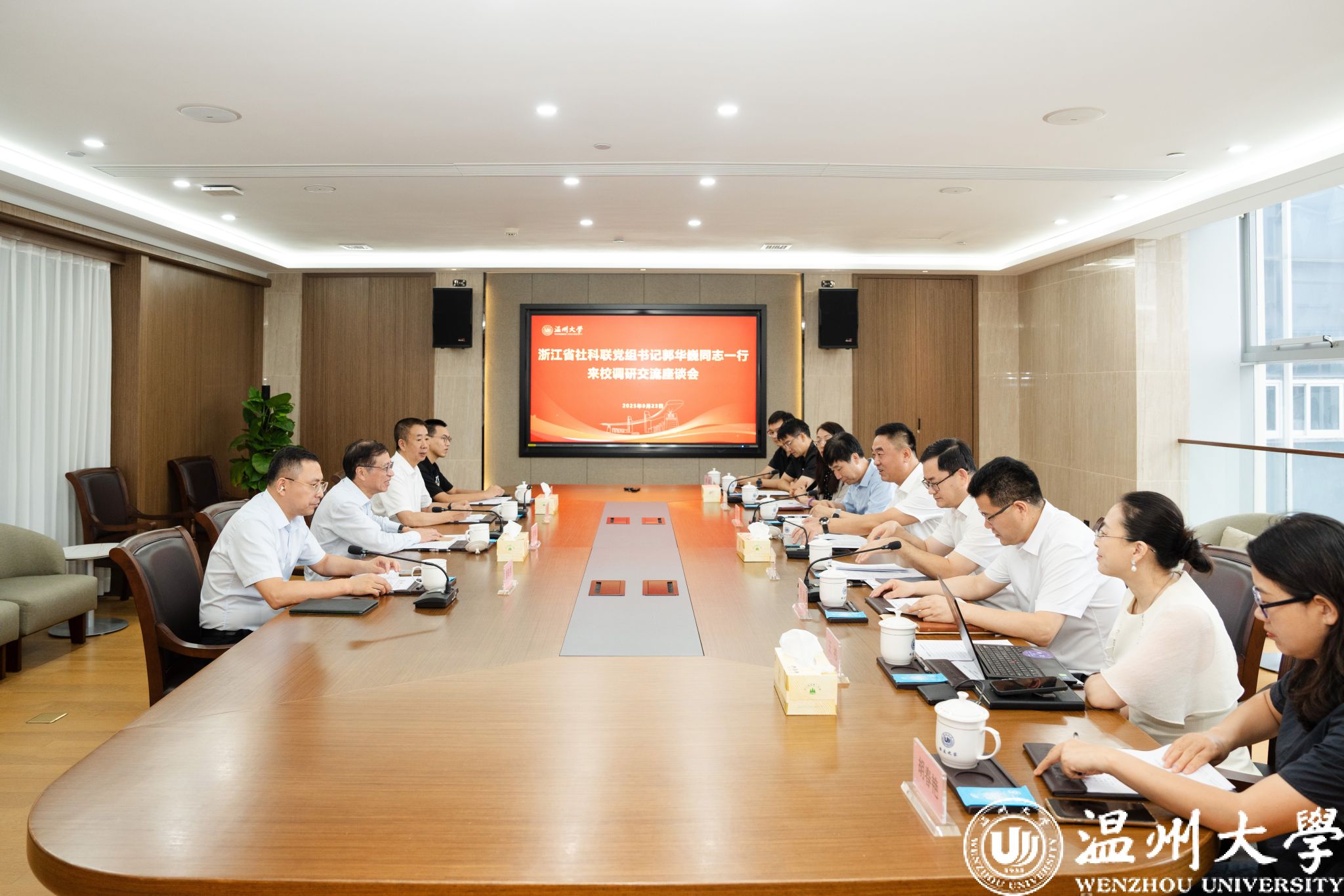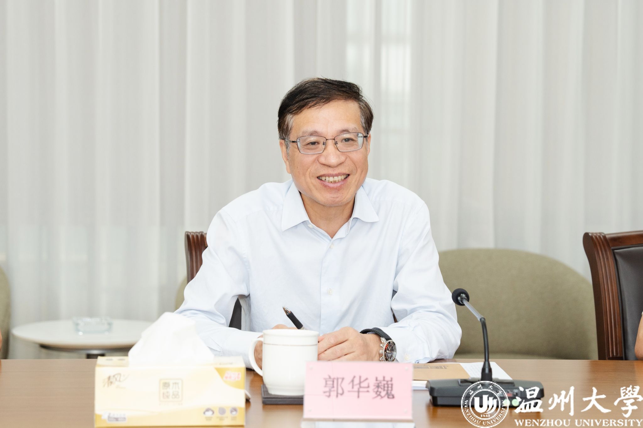 9月23日下午,浙江省社科联党组书记、副主席郭华巍一行来校调研,浙江省社科联党组成员、秘书长陈名义,温州市社科联党组书记、主席潘晓勇,万象城手机网页版登录入口校领导钱强、赵敏、王军陪同调研。