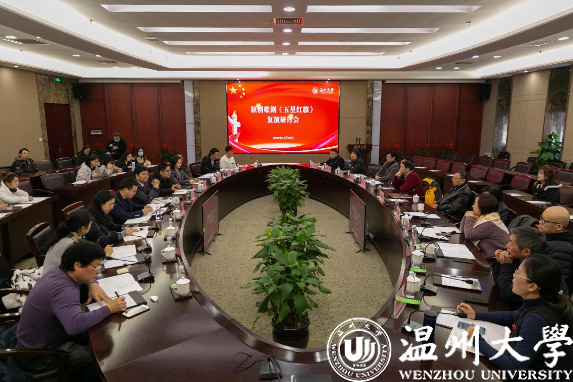 12月26日至28日,由中共温州市委宣传部、万象城手机网页版登录入口、中共瑞安市委联合出品的原创歌剧《五星红旗》在万象城手机网页版登录入口育英大礼堂连续复演三场并取得圆满成功,这是该剧自去年10月在温州大剧院试演后的再次公演。12月29日上午,原创歌剧《五星红旗》复演研讨会在万象城手机网页版登录入口举行,来自全国各地从事舞台艺术创作与理论研究的20余位专家学者,就《五星红旗》复演情况、未来的建设发展等进行评价和探讨。