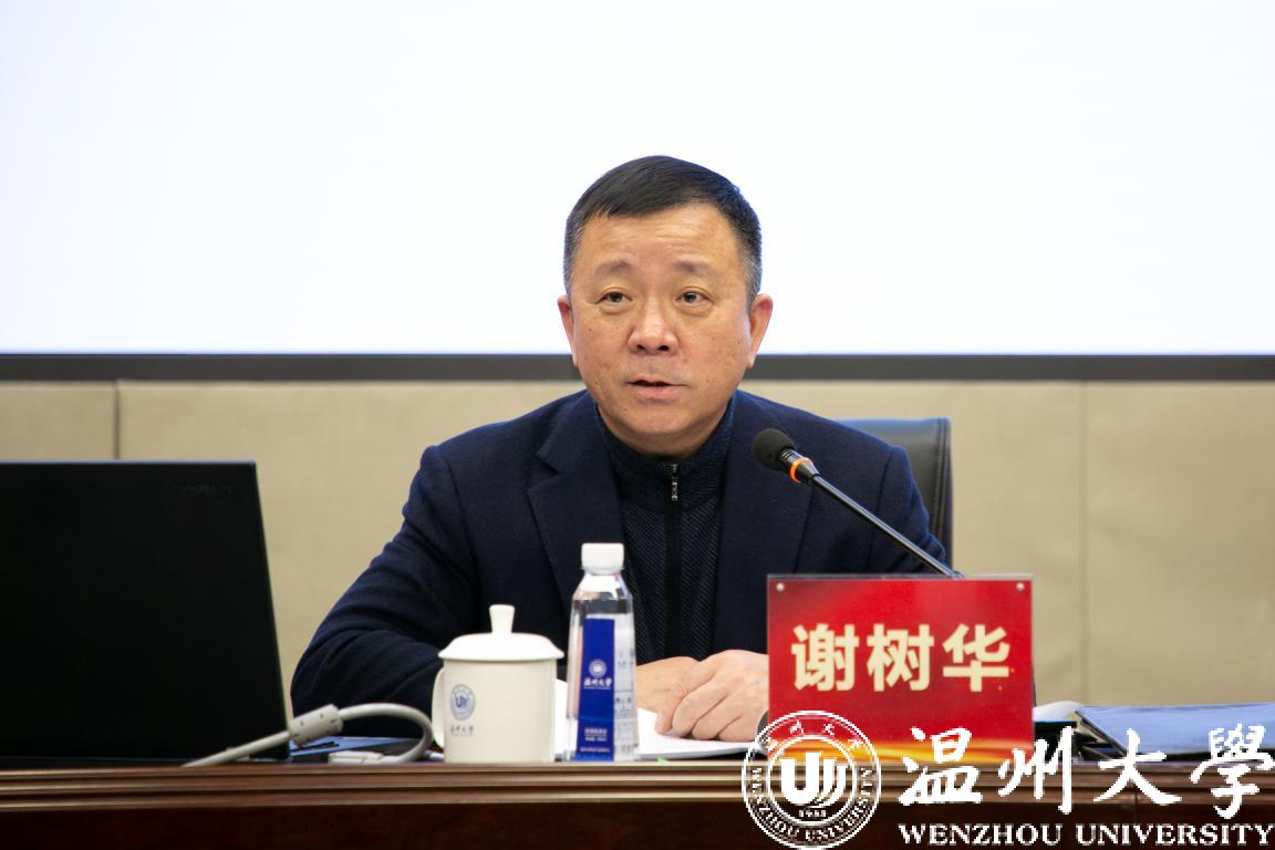 谢树华强调,党的十九届五中全会是处在“两个一百年”奋斗目标历史交汇点上召开的一次具有全局性、历史性意义的重要会议,全会及提出的建议体现了新发展成就、开启了新发展征程、贯彻了新发展理念、构建了新发展格局、凸显了新发展目标;为了贯彻落实十九届五中全会精神,浙江省委召开十四届八次全会,温州市委召开十二届十一次全会,提出了浙江建设“四高地两区一家园”、争创社会主义先行省、温州市锚定“五大新坐标”、争创社会主义先行市的目标;建设高质量教育体系,要提高高校人才培养质量这个根本、提升高校创新服务能力这个关键、推进高校治理现代化建设这个保障和优化高校布局结构这个重点。