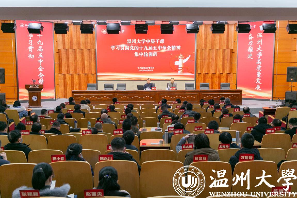 12月28至31日,我校举办中层干部学习贯彻党的十九届五中全会精神集中轮训班。校党委书记谢树华出席总结会议并作专题报告,校党委副书记吴金法,党委委员、组织部部长郑信军出席会议。全体中层干部、瓯江学院相关人员等200余人参加集中轮训。