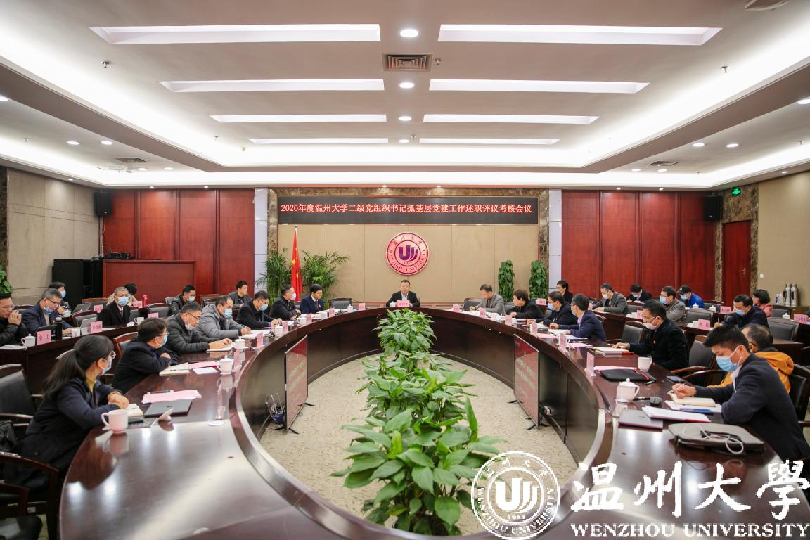 二级党组织书记抓基层党建工作述职评议考核采用现场述职和书面述职相结合的方式进行。校本部16个学院党委和瓯江学院党委等17位书记重点围绕推进基层党组织和广大党员干部深入学习贯彻习近平新时代中国特色社会主义思想情况;履行抓基层党建和全面从严治党工作第一责任人职责情况;落实基层党建工作重点任务情况;围绕学校发展大局和本单位中心任务发挥基层党组织战斗堡垒作用和党员先锋模范作用情况;推动基层党组织落实全面从严治党有关工作情况;上年度述职评议考核整改清单落实情况和巡视巡察反馈中涉及基层党建工作问题整改情况等六个方面进行现场述职,其他二级党组织书记进行书面述职。随后,现场参会人员对各位书记的述职情况进行测评。