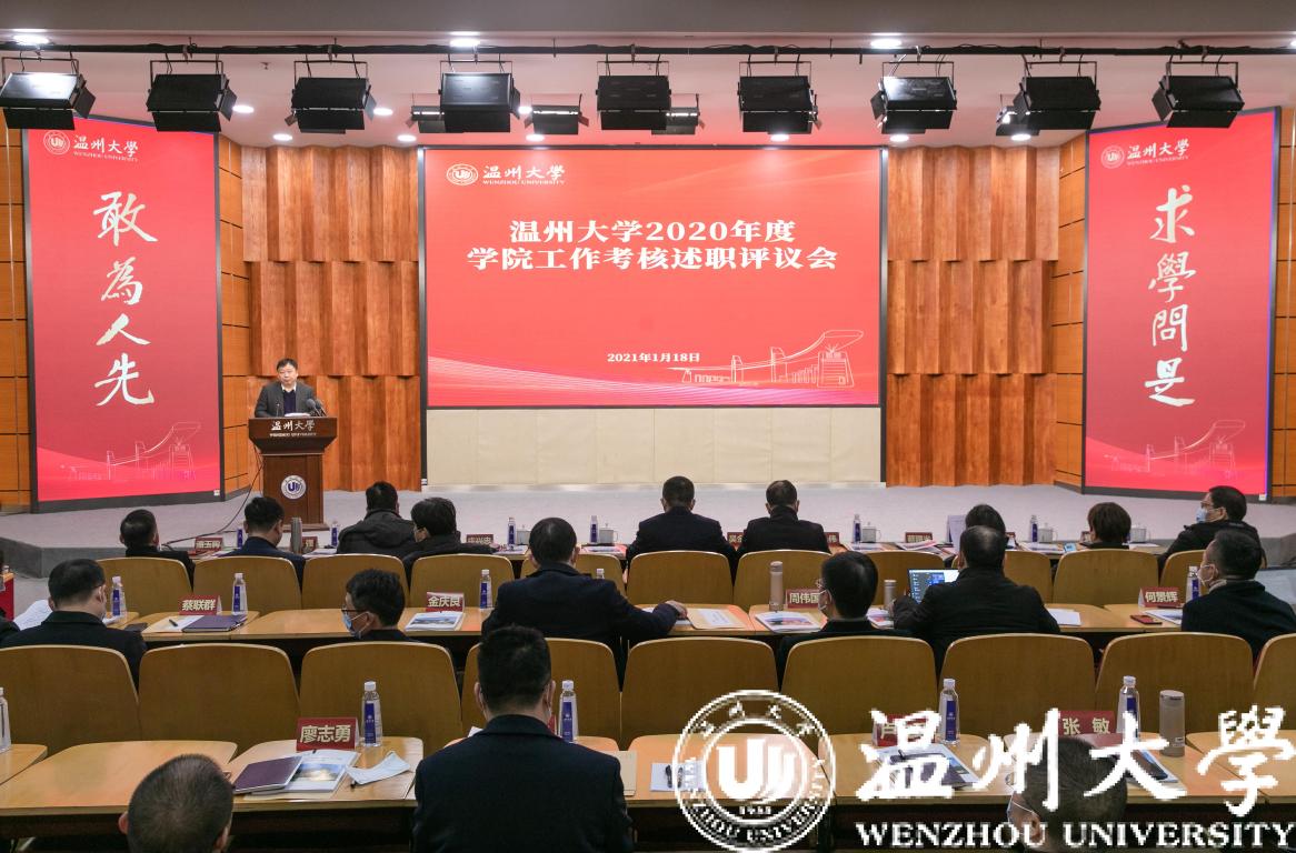 1月18日,万象城手机网页版登录入口2020年度学院、部门工作考核述职评议会举行。校领导、全体学院党政负责人、职能部门负责人和部分党代会、教代会代表参会。赵敏校长主持会议。