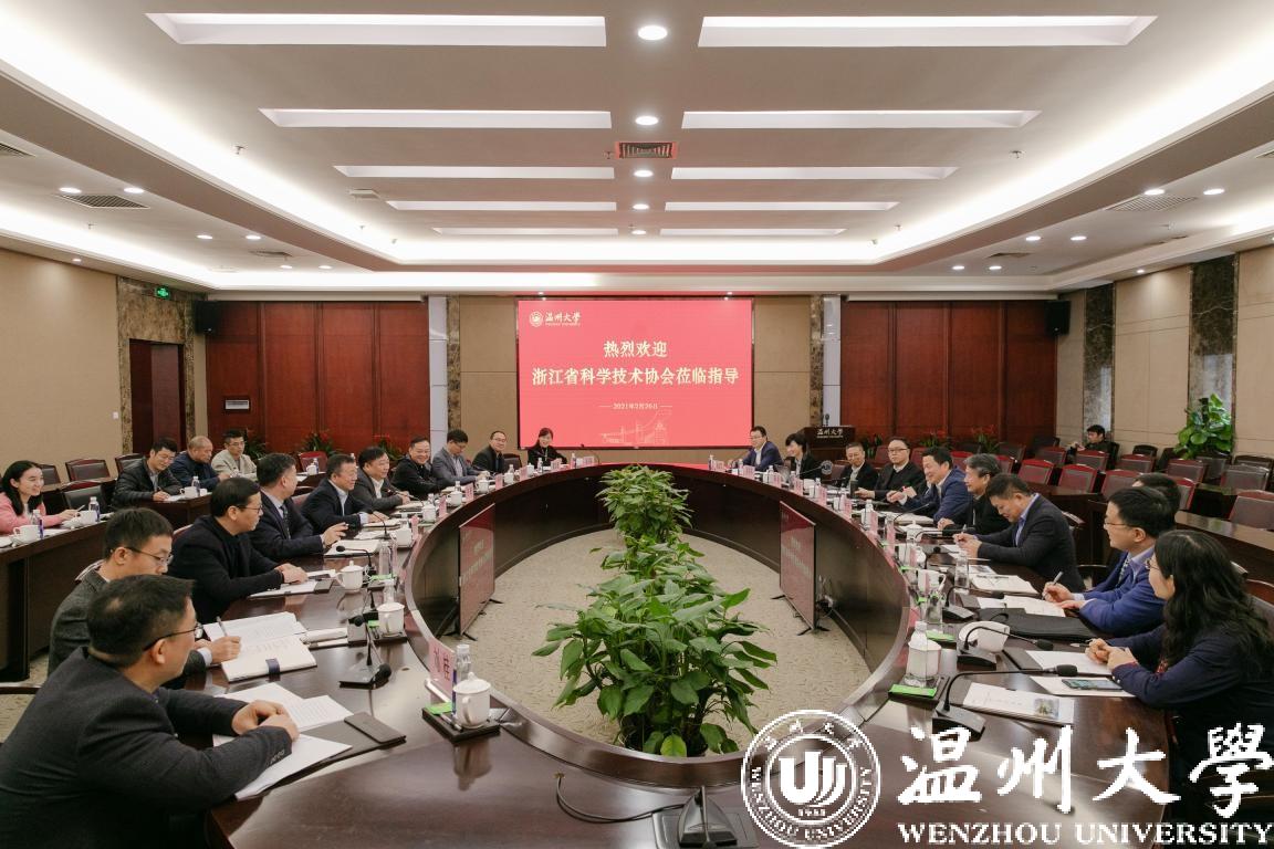 2月26日,浙江省科协党组书记、副主席谢志远一行莅临我校调研工作。温州市副市长汪弛、市政府副秘书长戴旭强、科协主席赖颖等领导陪同调研。校领导谢树华、赵敏、徐和昆、潘玉驹、郑信军出席调研座谈会。党委书记谢树华主持。
