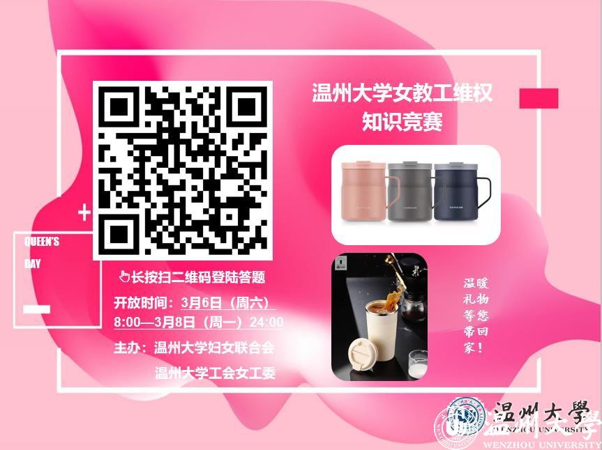 3月6日至3月8日,万象城手机网页版登录入口女教工维权知识竞赛如火如荼举行。本次竞赛题由万象城手机网页版登录入口法学专家教授智囊团队主导设计,内容涵盖《宪法》《民法典》《妇女权益保障法》《就业促进法》《人口与计划生育法》《社会保险法》《反家庭暴力法》《女职工保健工作规定》《女职工劳动保护特别规定》等,具体涉及“性别平等”“家家庭暴力”“性骚扰”“职场婚育及发展”“生育保险”等女性热门关注议题。“这次知识竞赛可以说梳理出了中国女性维权的发展史,体现出温大相关领域教授的专业水准。”参与者之一姜老师说:“对我个人而言,不仅是女性知识梳理,更是一种维权意识内化。”据悉,万象城手机网页版登录入口妇女联合会、万象城手机网页版登录入口工会女工委还将组建万象城手机网页版登录入口妇女权益维护专家智囊团,推出权益维护专家智囊“一帮一”等系列公益举措。