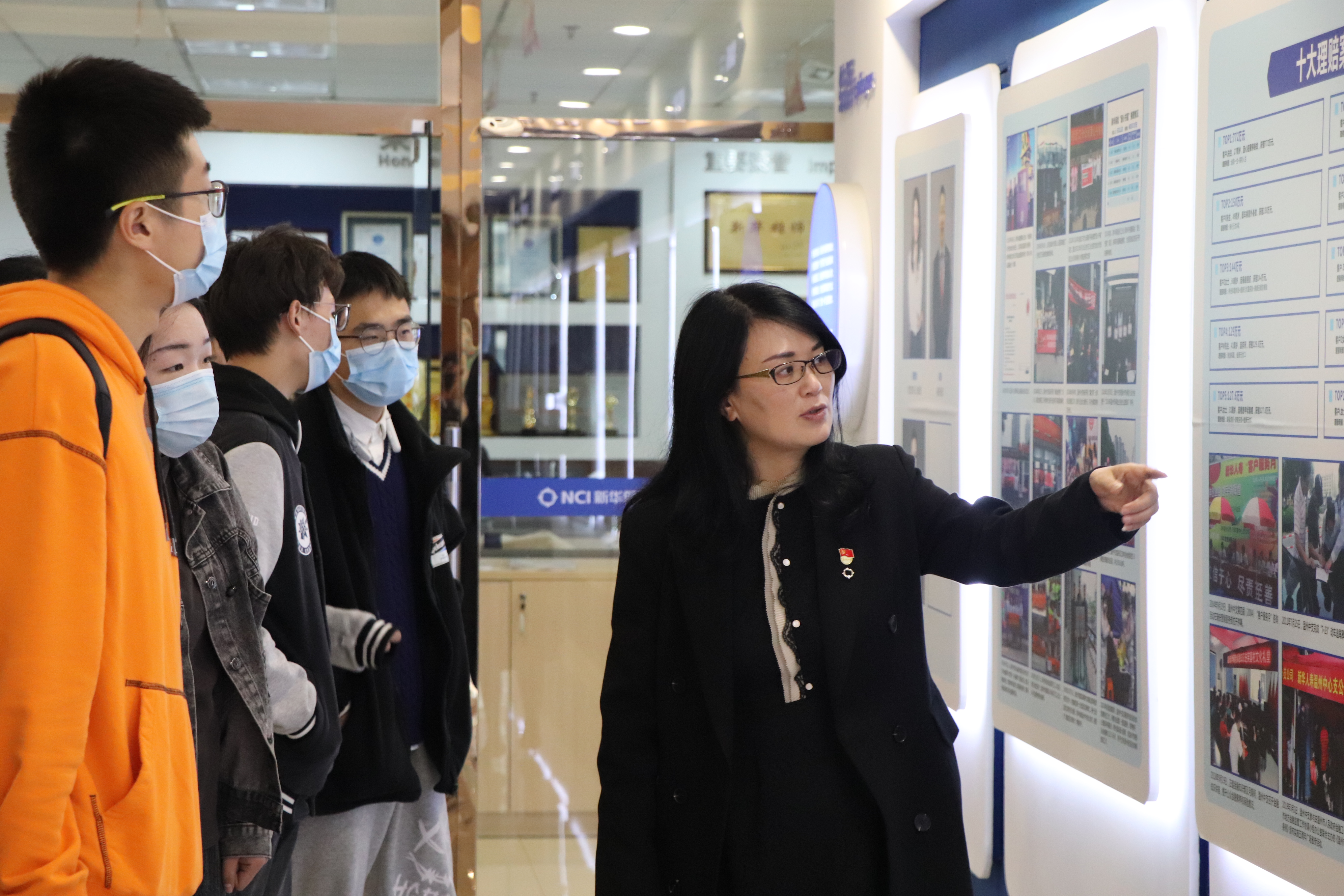 现场,新华保险浙江分公司党委副书记董松芳为大学生们带来《学百年党史,悟深邃思想》主题党课。为深化校企合作,促进大学生就业,活动中双方还建立了毕业生优质就业基地,并举行授牌仪式。随后,大学生们听取了金融安全教育报告,与任职该公司的2018届毕业学长张仁军进行交流,还参观了企业文化建设成果。