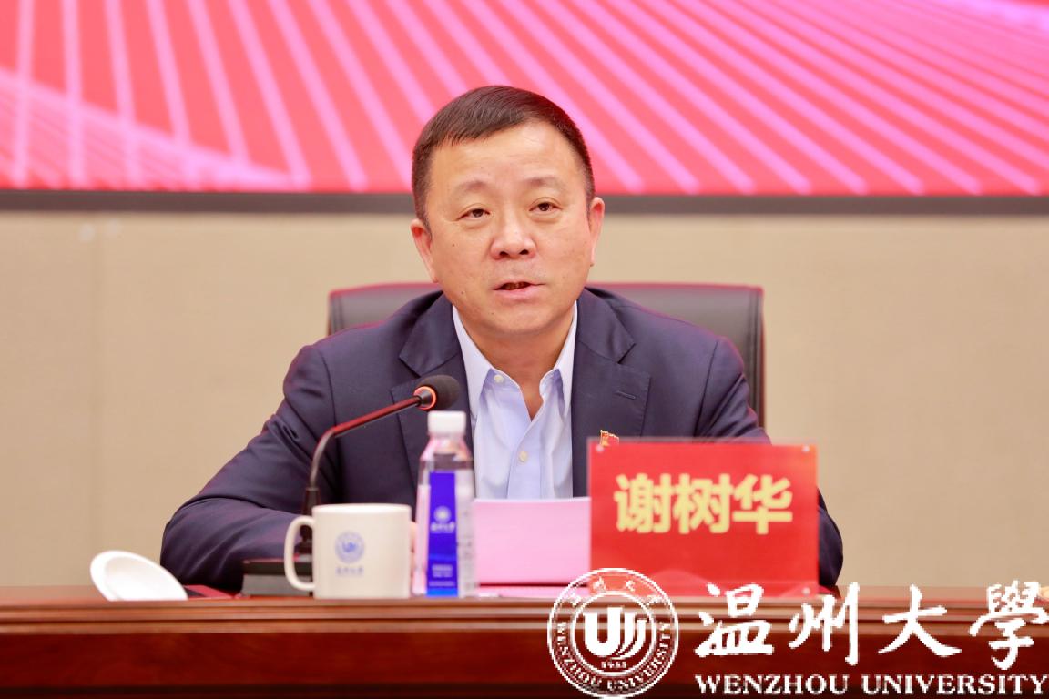 校党委书记谢树华讲话。他指出,正值中国共产党建党100周年、“十四五”开启发展新征程之际,我校召开2021年全面从严治党工作暨“清廉温大”建设推进会,具有重要的意义;要把握大势,增强全面从严治党的责任感使命感。他分别从国家新发展阶段、浙江新发展目标、教育新发展任务等三个角度分析,提出全面从严治党既是一项需要持之以恒、久久为功的长期工程,又是一项需要随着形势的变化,常抓常新、日有所进的动态工程。