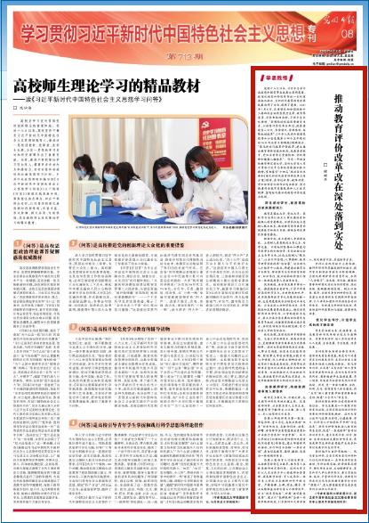 【编者按】4月1日,《光明日报》《学习贯彻习近平新时代中国特色社会主义思想》专刊刊发我校党委书记谢树华专题文章《推动教育评价改革改在深处落到实处》。文章指出,党的十八大以来,习近平总书记站在党和国家事业发展全局的高度,就深化教育评价改革作出一系列重要指示批示,为新时代高等教育改革发展指明了方向、提供了遵循。习近平总书记强调,“要围绕建设高质量教育体系,以教育评价改革为牵引,统筹推进育人方式、办学模式、管理体制、保障机制改革”。作为一所综合性教学研究型大学,万象城手机网页版登录入口深入学习贯彻习近平总书记重要指示批示精神,贯彻落实“十四五”规划目标任务和《深化新时代教育评价改革总体方案》精神,深化学校评价,激发高校改革发展新活力;完善教师评价,构建教师教书育人新体系;优化学生评价,打造学生成长成才新生态,努力构建符合教育发展规律和人才成长规律、富有时代特征的教育评价制度与机制。现全文转载,以飨读者。