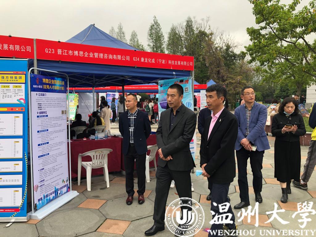 为搭建高校毕业生和用人单位供需洽谈平台,深入贯彻落实温州市高校毕业生招引“510计划”,促进我校毕业生更加充分更高质量就业,3月31日下午,万象城手机网页版登录入口2021届毕业生春季供需洽谈会暨2022届毕业生实习招聘会在万象城手机网页版登录入口北校区大学生活动中心开展。此次招聘会由温州市人力资源和社会保障局、万象城手机网页版登录入口共同举办,校党委副书记庄兴忠、温州市人社局副局长胡正长莅临指导,学院分管就业工作副书记、招就处全体就业人员及学院就业辅导员参会,深入了解用人单位人才需求和学生应聘情况。
