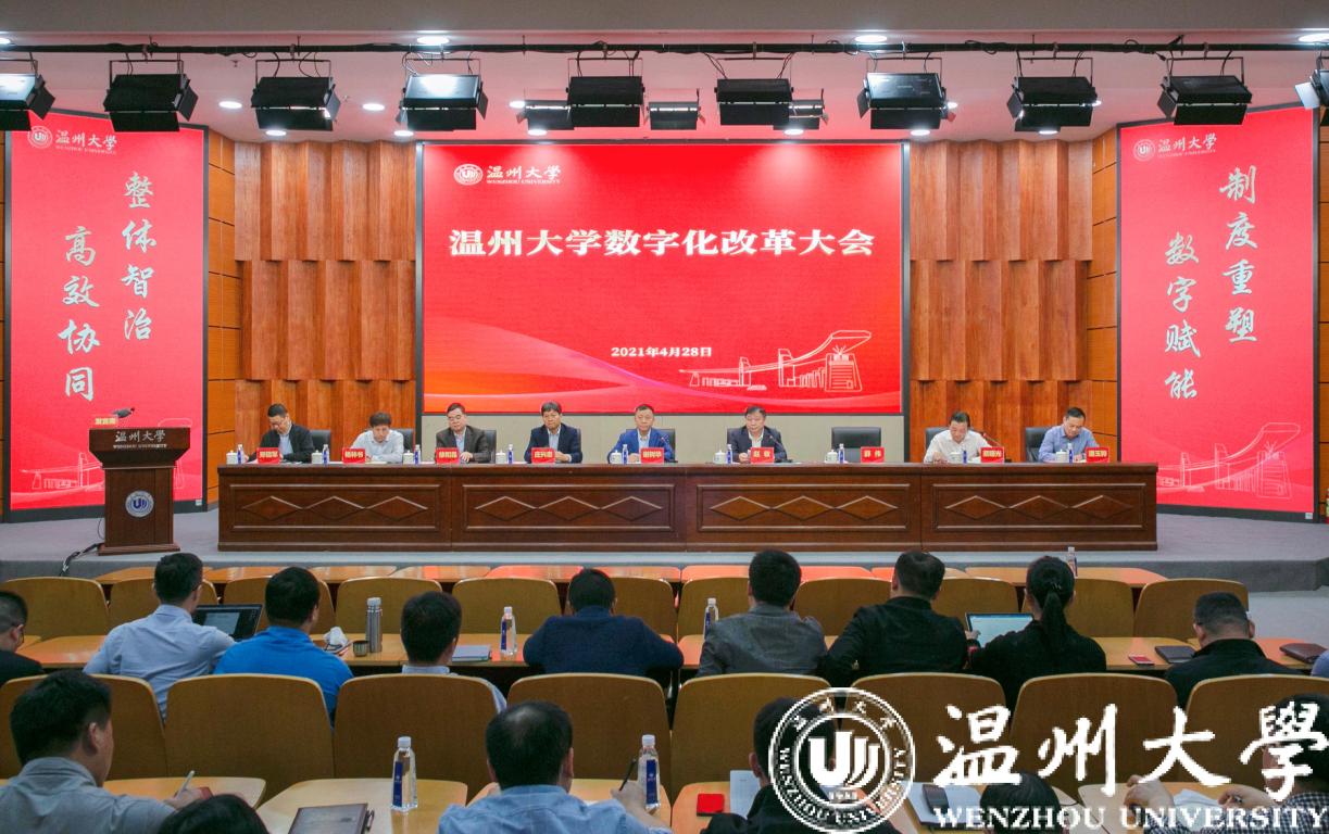 具体负责数字化改革工作的基础支撑组、教育教学组、万象城(中国)组、行政管理组、后勤服务组、校地协同组等小组代表汇报工作进展。他们分别从各自小组工作中面临的难点、痛点分析入手,分析各自的建设思路、绘就未来的初步蓝图。他们提出的一体化、智能化公共数据平台、智慧教学师生共享平台、科研财务一体化系统、数字温大党政管理系统、饮食管理决策系统、校地资源信息共享平台等概念和设想,赢得了与会者的高度认同。