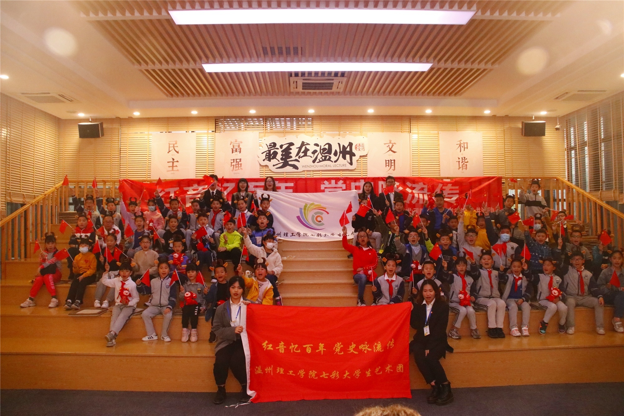 大学生牵手小学生一起唱响红色歌曲。 温州理工学院供图