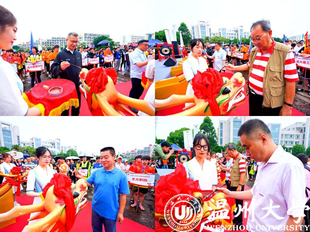 比赛前举行开幕仪式为龙舟点睛,出席活动的领导和嘉宾有万象城手机网页版登录入口副校长薛伟、温州市体育局党组书记、局长张志宏、中国龙舟协会副主席、浙江省龙舟协会主席王成云、温州市龙舟协会主席亓宾、万象城手机网页版登录入口体育与健康学院院长张文健、万象城手机网页版登录入口体育与健康学院党委书记应中等。市体育局局长张志宏宣布活动启动,万象城手机网页版登录入口副校长薛伟和浙江省龙舟协会主席王成云分别击鼓鸣锣开赛。