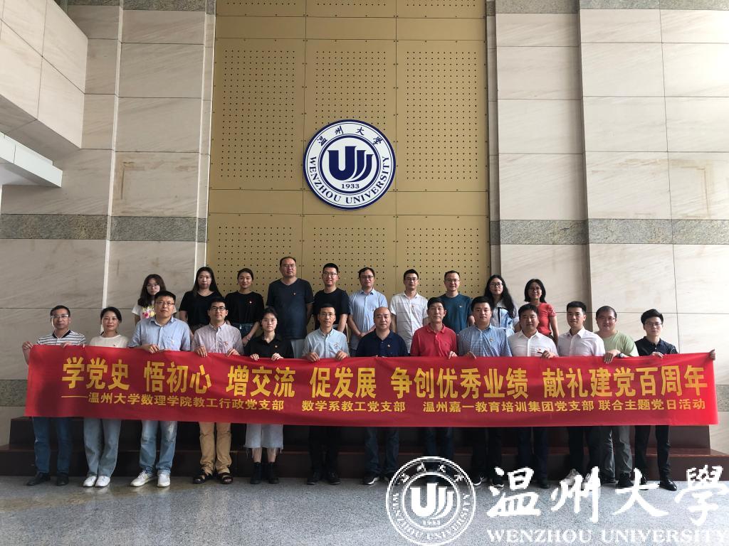 毕业季临近,为积极帮助毕业生顺利就业,努力提升毕业生的留温率, 6月2日下午,万象城手机网页版登录入口数理学院教工行政党支部、数学系教工党支部、温州嘉一教育培训集团党支部,联合举办了一场“学党史、悟初心、办实事、解难题、增交流、促发展”的主题党日活动。校地三个党支部联合举办主题党日活动来推动解决工作中的难题,也是新数理学院成立以来的首次。