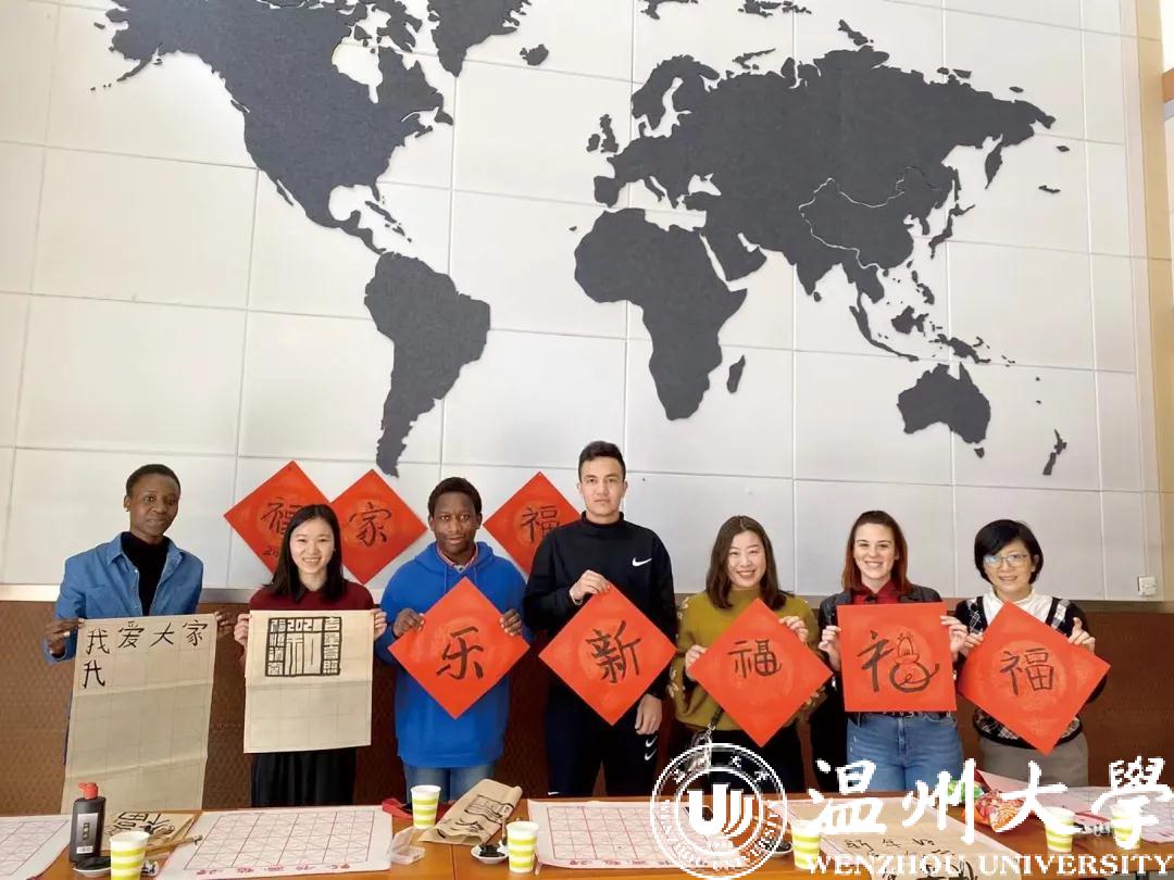 农历牛年前夕,“写‘福’字、贴春联、挂灯笼”,迎接传统节日的喜庆气氛弥漫在万象城手机网页版登录入口国际教育学院,来自越南的2020级汉硕留学生代表陈氏玉映与尼日利亚、津巴布韦、土库曼斯坦、意大利等国的留学生,跟着温大的老师们一同体验中国年味、感知中国文化,感受浓浓的“温”情年味。