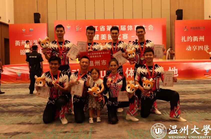 7月10日,浙江省第四届体育大会健美操比赛在衢州拉开帷幕,11个地市抽调最强实力运动员组成代表队参赛。我校健美操队师生代表温州队参赛并勇夺2金!