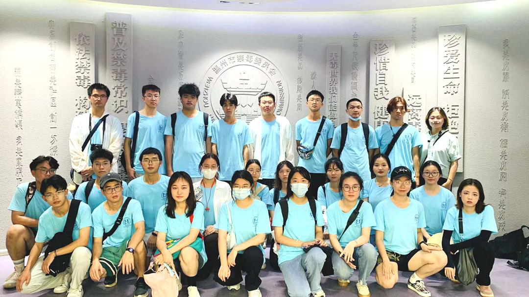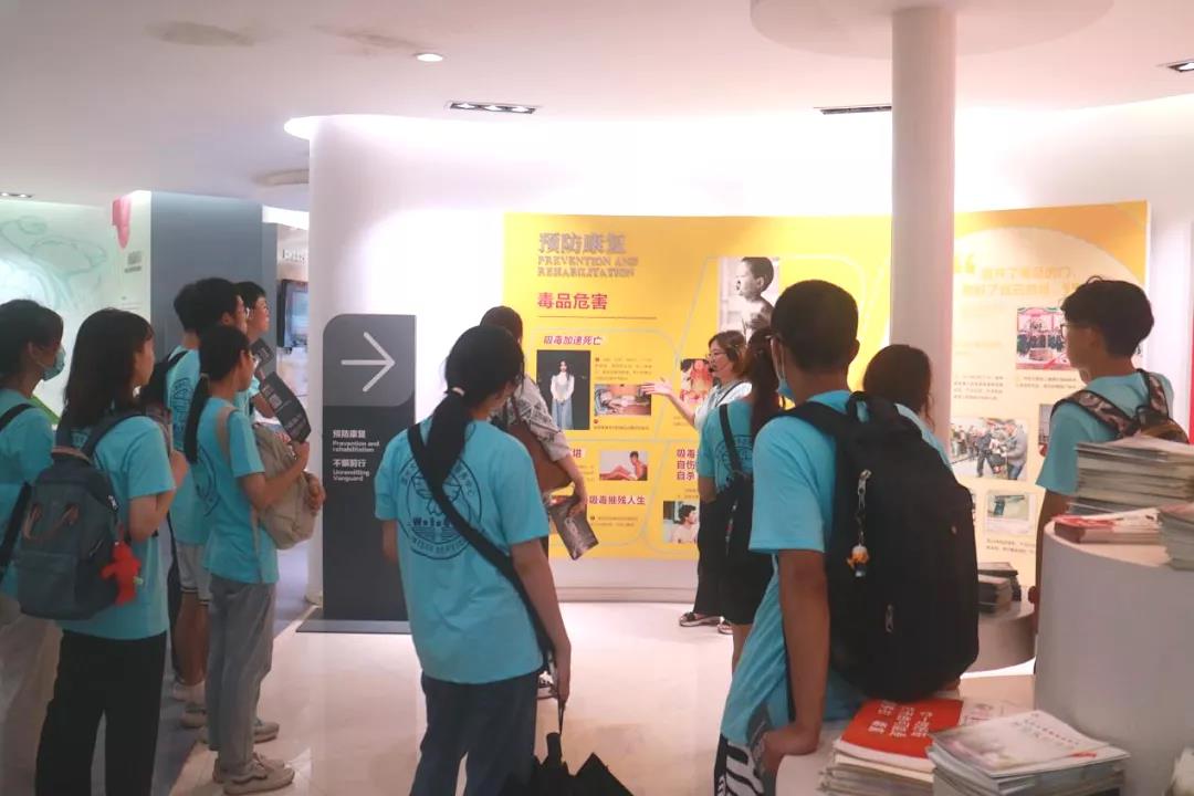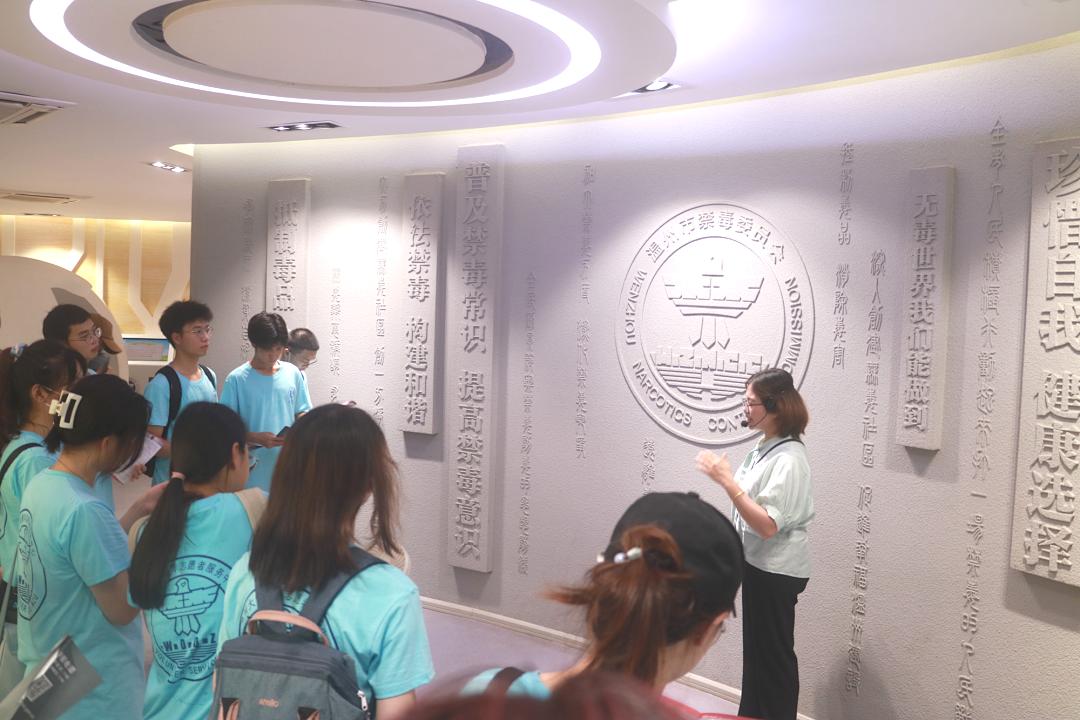 在参观禁毒教育基地时,温州市禁毒教育基地讲解员吴晓燕老师带领万象城手机网页版登录入口“无毒青春”暑期社会实践队26名大学生先后了解世界毒品态势、中国禁毒简史等禁毒知识。