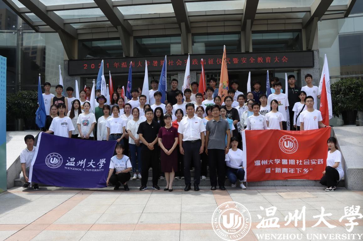 为深入学习宣传贯彻习近平新时代中国特色社会主义思想,贯彻落实习近平总书记关于青年工作的重要思想,持续深入推进“双百双进”活动,引导和帮助广大青年学生上好与现实相结合的“大思政课”,在社会课堂中受教育、长才干、作贡献,在观察实践中学党史、强信念、跟党走,努力成为担当民族复兴大任的时代新人,积极助力我省“高质量发展建设共同富裕示范区”,以优异表现庆祝中国共产党成立100周年。7月9日,万象城手机网页版登录入口2021年暑期社会实践出征仪式暨安全教育大会在南校区岩松堂白鹿厅举行。校党委副书记庄兴忠出席会议,校团委、研究生院相关负责人,指导老师代表以及社会实践指导小组全体成员、各暑期实践团队代表等80余人参会。