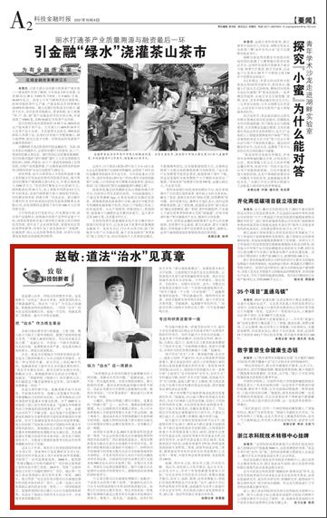 编者按:近日,《科技金融时报》刊发我校赵敏校长专题报道:《道法“治水”见真章》,现全文转载,以飨读者。