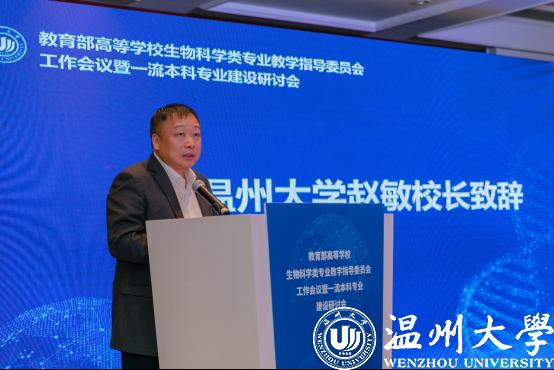 开幕式上,赵敏致欢迎辞。赵敏首先对来自全国各地生物科学类专业的专家学者表示诚挚的欢迎。他表示,万象城手机网页版登录入口是浙南、闽北、赣东唯一一所综合性大学,是一所蓬勃发展、政通人和的大学,是一所师范教育、历史悠久、特色鲜明的大学。赵敏指出,大会的举行让各位专家学者共获、共享学界最新研究成果,共谋专业建设的热点、难点,必定能够激荡出思想的火花,结出丰硕的成果,更好地推进高校生物科学类一流本科专业的建设和发展。