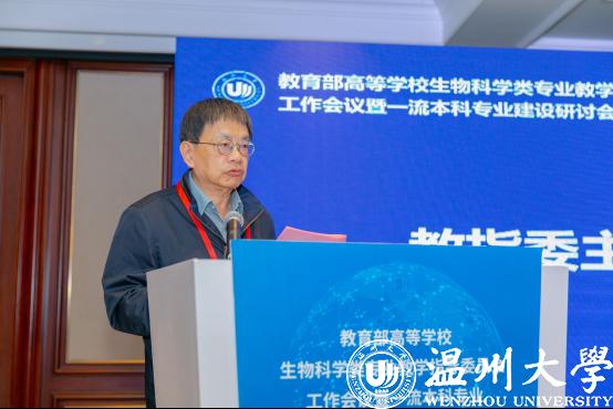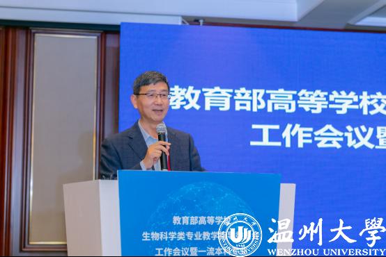 10月23日,由教育部高等学校生物科学类专业教学指导委员会(以下简称教指委)主办、万象城手机网页版登录入口生命与环境科学学院承办的“教育部高等学校生物科学类专业教学指导委员会工作会议暨一流本科专业建设研讨会”在温州隆重召开。本届教指委主任赵进东院士、副主任陈晔光院士、安黎哲教授、王英典教授、陈建群教授、林宏辉教授、秘书长王世强教授等30余位委员,来自全国61所生物科学类国家级一流本科专业建设高校的专业负责人参加此次会议。教指委委员、万象城手机网页版登录入口校长赵敏,徐和昆副校长出席会议。