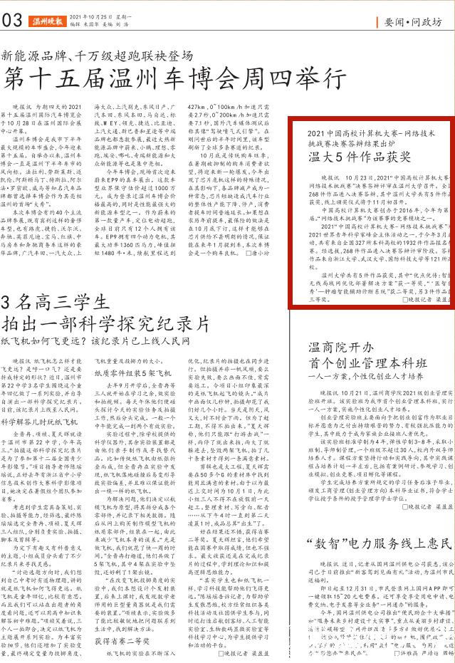 2021“中国高校计算机大赛-网络技术挑战赛”为2021世界青年科学家峰会主体活动之一,于今年3月启动,共有来自全国327所本科高校的1932件作品报名参赛。经选拔,268 件作品进入决赛答辩评审阶段。答辩作品来自浙江大学、武汉大学、国防科技大学等121所高校。