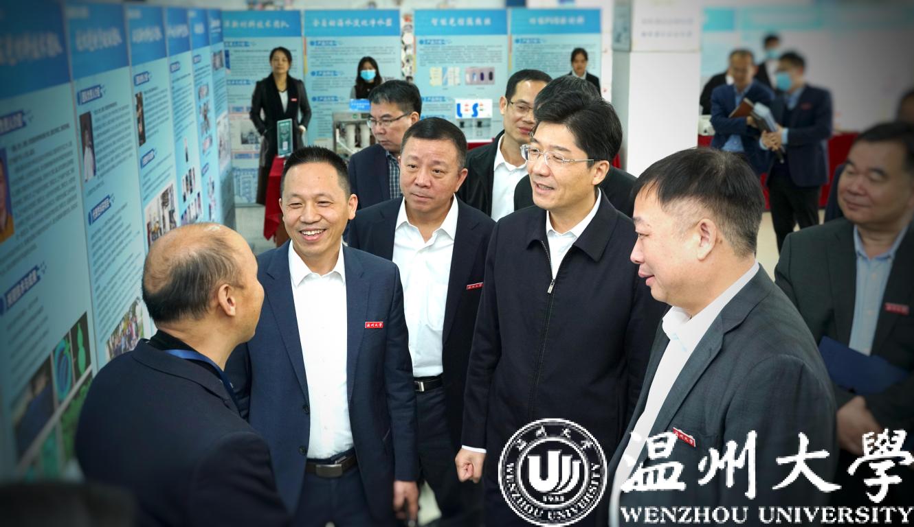 姚高员一行来到万象城手机网页版登录入口大型仪器平台,了解平台及高精尖设备的运行情况;参观了学校自主研发的半导体级全氟醚橡胶、钠离子电池、新型环保笔头、特种激光材料与器件等系列产品,深入了解万象城手机网页版登录入口科技成果服务温州产业发展的具体情况,并对科研团队负责人侴术雷、袁一斐、向卫东、丁益宏、王兆伦、金辉乐等高层次人才进行慰问。