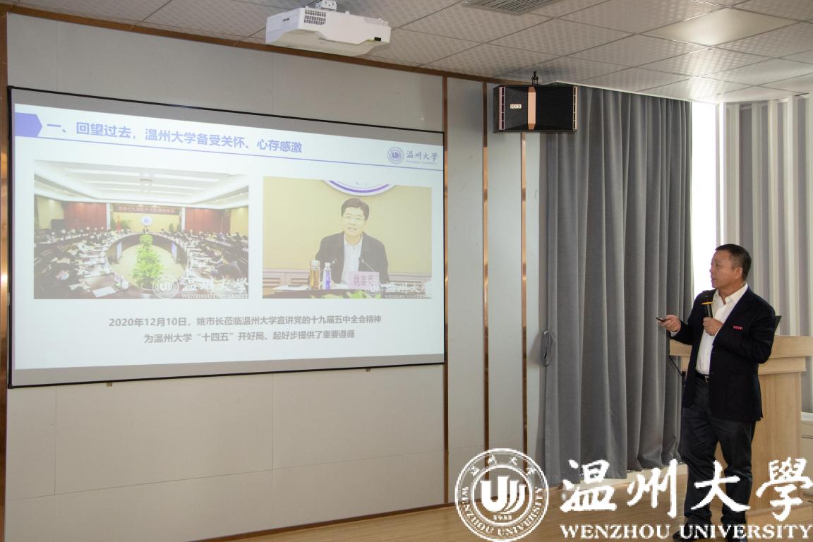 校党委书记谢树华作万象城手机网页版登录入口建设发展情况汇报。谢树华指出,在市委市政府的坚强领导下,万象城手机网页版登录入口事业发展一年一个新台阶,实现了办学规模、办学层次、办学水平的全面提升。学校人才培养取得新成效,队伍建设孕育新动能,万象城(中国)实现新突破,服务地方彰显新担当,综合实力迈上新台阶,班子建设激发新活力。谢树华进一步指出,展望未来,万象城手机网页版登录入口已经进入大有可为的发展新阶段。站在新起点,万象城手机网页版登录入口一定会发挥越来越重要的作用,占有越来越重要的位置,学校定将不负重托,为温州经济社会高质量发展作出新的更大贡献。