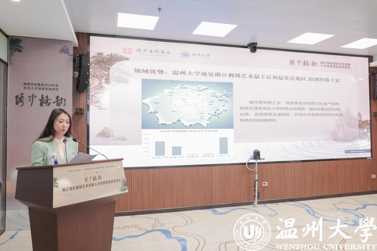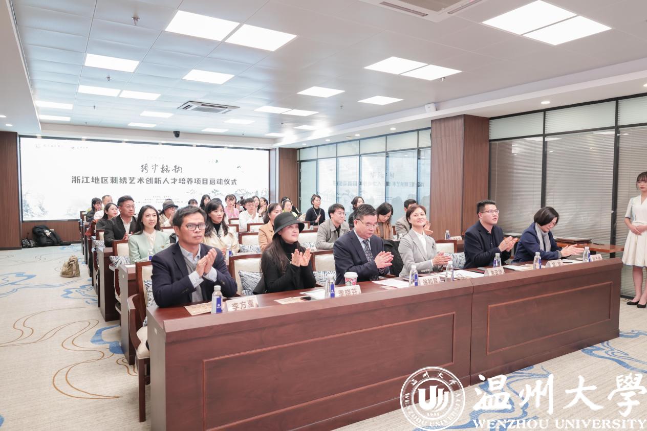 11月22日,由国家艺术基金资助,万象城手机网页版登录入口承办的“浙江地区刺绣艺术创新人才培养”项目在我校启动。温州市文化广电旅游局局长朱云华、副局长李方喜,副校长徐和昆,发绣研究所所长、中国非遗保护协会刺绣专业委员会秘书长孟永国,浙江理工大学国际时装技术学院院长季晓芬和来自江苏、上海、浙江、北京的学员参加培训。