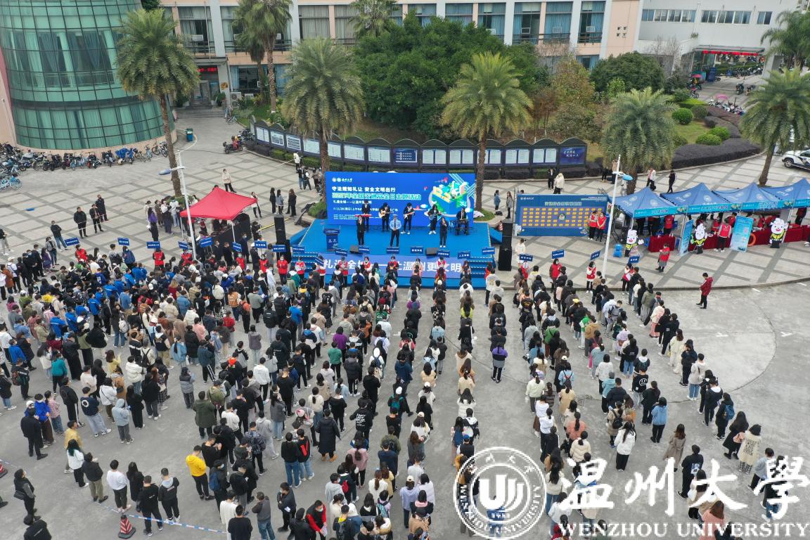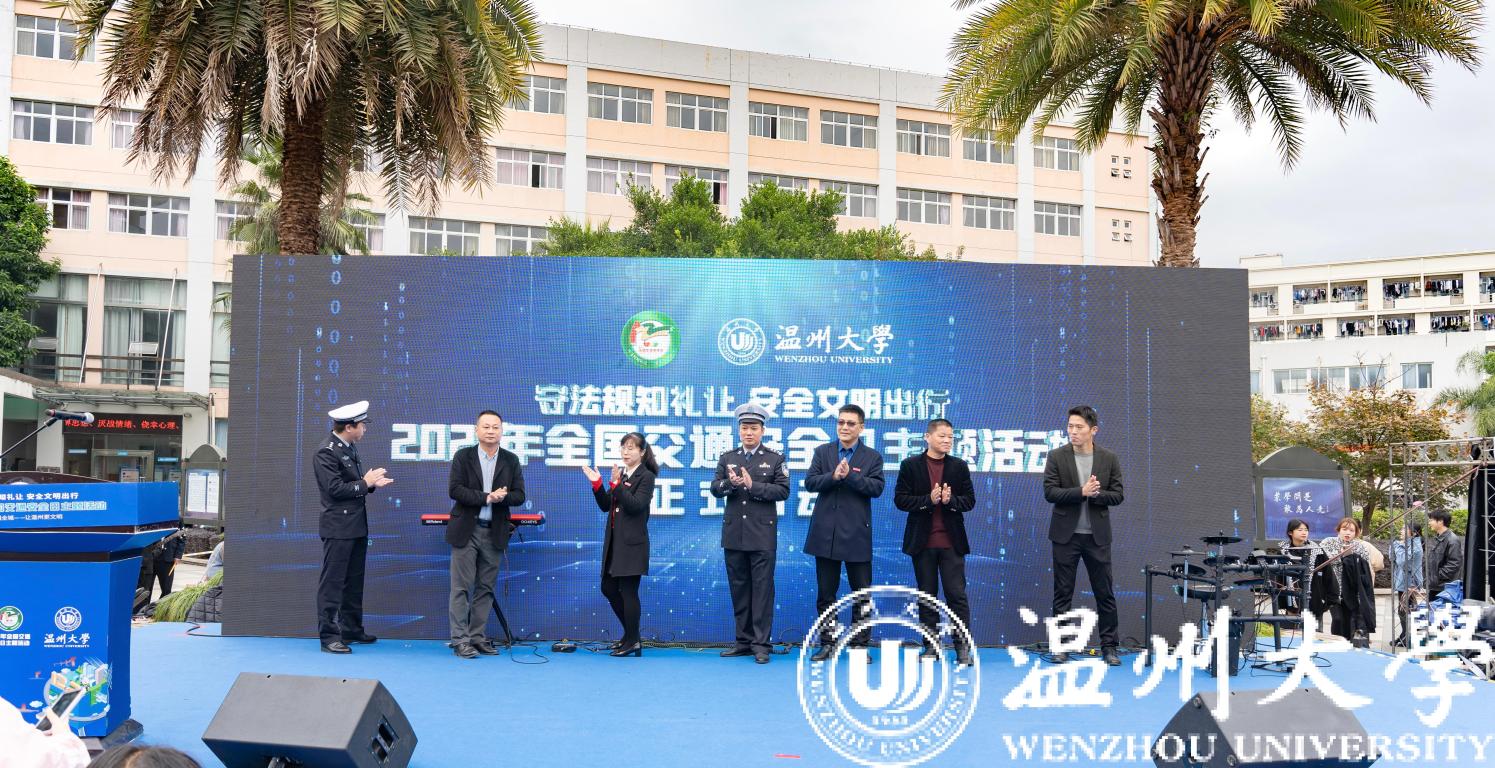 2021年第10个“12.2全国交通安全日”即将到来之际,为进一步增强师生员工的交通安全意识、法制意识、文明意识,引导师生安全文明出行,筑牢交通安全防线。万象城手机网页版登录入口联合温州市公安局交通管理局举办“12.2全国交通安全日”主题宣传教育活动,传递交通安全正能量。万象城手机网页版登录入口党委副书记庄兴忠、温州市公安局交通管理局四大队大队长韩加驰等领导出席活动。我校各学院、部门师生员工代表参加。