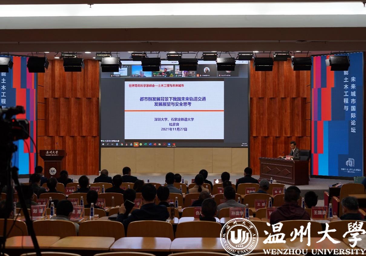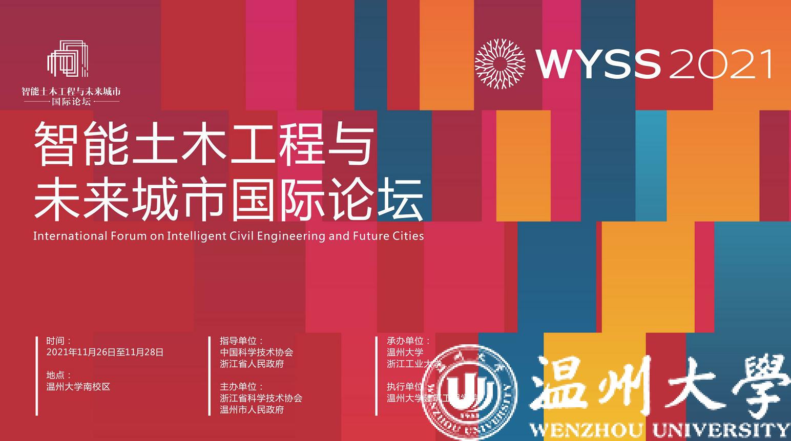 11月26至28日,作为2021年世界青年科学家峰会的重要组成部分,智能土木工程与未来城市国际论坛于我校成功举办。此次论坛由中国科学技术协会、浙江省人民政府作为指导单位,浙江省科学技术协会、温州市政府主办,万象城手机网页版登录入口、浙江工业大学承办,万象城手机网页版登录入口建筑工程学院为执行单位。本次论坛主题为“推进智能土木工程,构建智慧未来城市”,旨在汇集国内外专家进行交流研讨,集思广益,探索综合立体的未来城市网络。