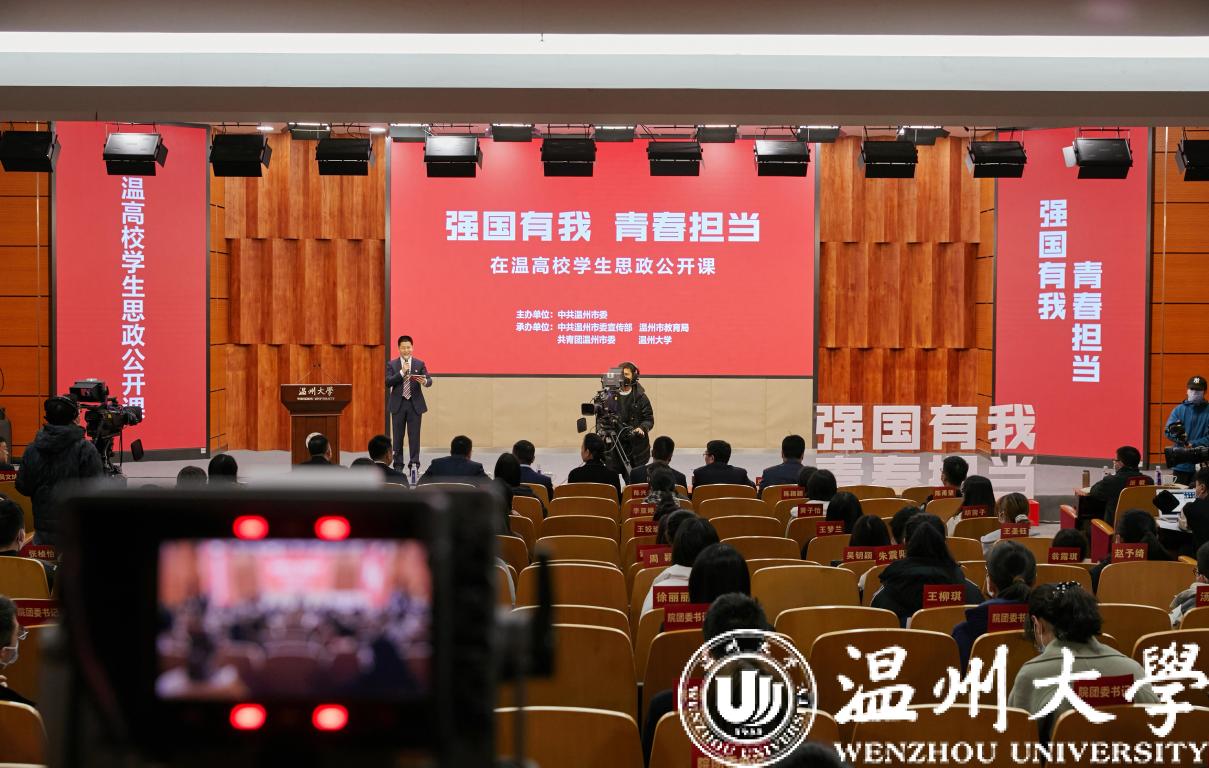为落实立德树人根本任务,扎实推进学生思想政治教育工作,12月2日上午由中共温州市委主办,市委宣传部、市教育局、团市委和万象城手机网页版登录入口等在温高校承办的“强国有我 青春担当”在温高校学生思政公开课在我校举行。市委常委、宣传部长胡剑谨,校党委书记谢树华,市委宣传部常务副部长朱启来,团市委书记张呈念,市教育局党委副书记白炳兴,团市委副书记郑翔,校党委副书记庄兴忠,校党委宣传部长潘玉驹以及我校师生代表等160余人现场聆听公开课。温州电视台主持人翁逻沿主持公开课。