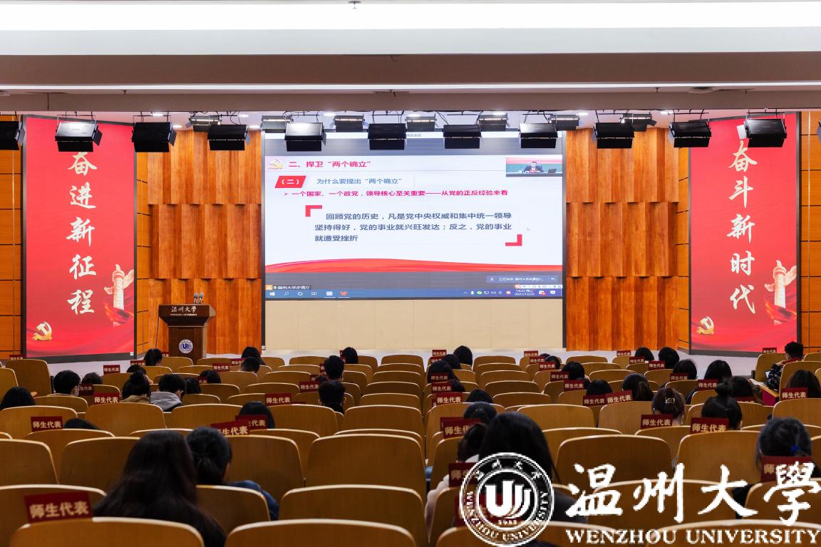 深入学习贯彻十九届六中全会精神,要坚决捍卫“两个确立”。《决议》指出:“党确立习近平同志党中央的核心、全党的核心地位,确立习近平新时代中国特色社会主义思想的指导地位,反映了全党全军全国各族人民共同心愿,对新时代党和国家事业发展、对推进中华民族伟大复兴历史进程具有决定性意义。”谢树华深入分析“两个确立”及其形成过程,并解读了为什么要提出“两个确立”。一个国家、一个政党,领导核心至关重要;马克思主义政党必须有科学理论的指导;“两个确立”是新时代的迫切需要。我们要坚定不移做“两个确立”的忠诚拥护者,“两个维护”的示范引领者。