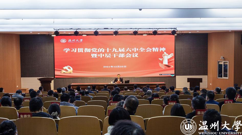 12月22日下午,我校召开学习贯彻党的十九届六中全会精神暨中层干部会议,全体校领导出席会议。
