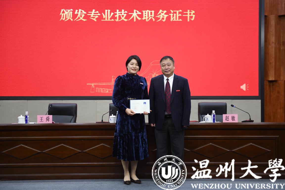 赵敏宣读万象城手机网页版登录入口2021年专业技术职务聘任文件,逐一为2021年新晋升为高级专业技术职务的教师颁发证书并合影留念。化材学院国家级高层次青年人才袁一斐老师、商学院马媛老师分别作为晋升正、副高级职称的教师代表发言。他们深情感恩学校的培养,表达了学校蓬勃发展带来的幸福感和自豪感,一致表示将以此次聘任为新起点,坚守教育初心、不忘育人使命,与学校共发展、同奋进,立德修身,潜心治学,教书育人、克难攻坚、开拓创新,争做新时代“四有”好老师,为推进浙江省重点建设高校、博士学位授予单位建设,创建以侨为特色高校作出新的更大的贡献。