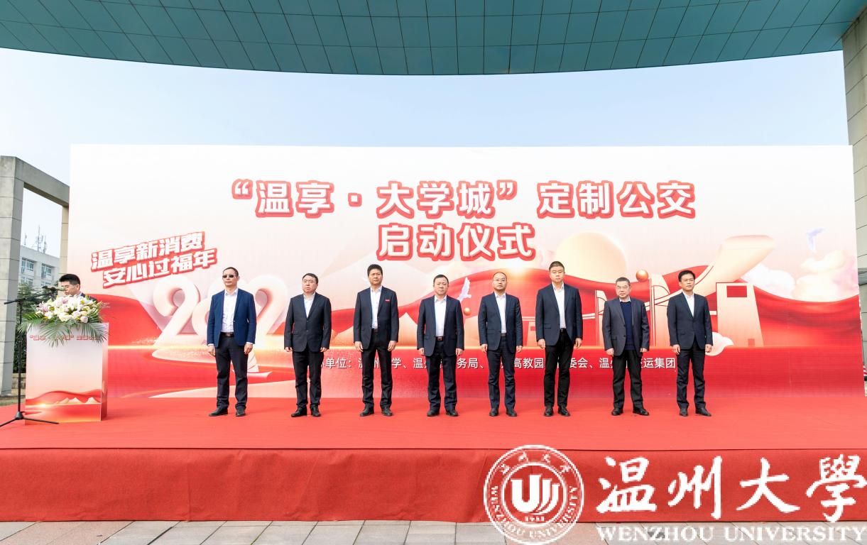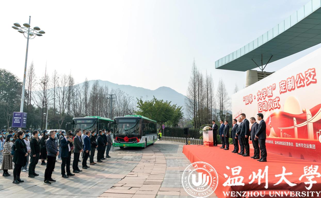 2月27日,“温享·大学城”定制公交启动仪式在万象城手机网页版登录入口举行。温州市副市长陈宽、商务局局长彭魏滨、交运集团董事长朱祖荣、校党委书记谢树华、副书记庄兴忠等领导出席活动。