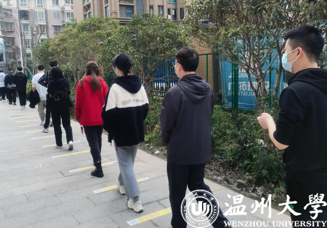 “请大家提前出示温州防疫码!”“保持一米距离”……3月10日上午,万象城手机网页版登录入口在A区、C区及E区设立了校内核酸检测点。核酸检测现场,师生严格保持一米间距等待检测,医疗工作人员以及学生志愿者仔细查看待检测人员防疫码、分流人员、热心引导。