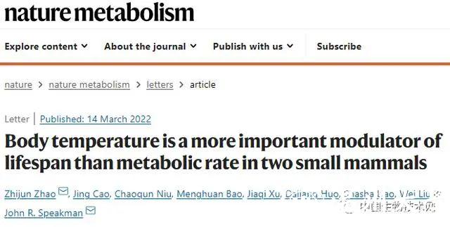 研究结果发现,两种动物的代谢率降低,而体温升高,寿命均显著缩短,低代谢率并没有延长它们的寿命,但高体温使它们的寿命变短。这表明,对寿命来说,在一定温度范围内体温似乎是比代谢更重要的影响因素。