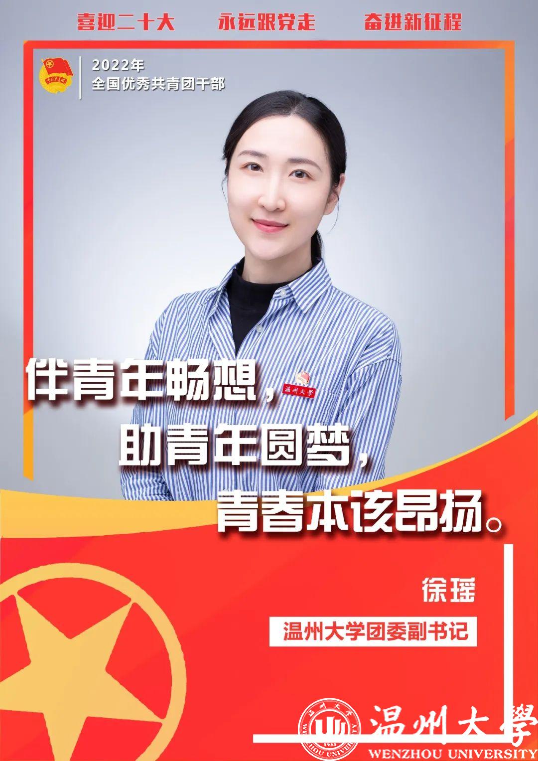 2022年是中国共青团成立100周年。近日,共青团中央作出表彰决定,授予293个团组织全国五四红旗团委称号,授予377个团组织全国五四红旗团支部称号,授予457人(含追授3人)全国优秀共青团员称号,授予341人(含追授1人)全国优秀共青团干部称号。其中,我校徐瑶老师获得全国优秀共青团干部荣誉称号。
