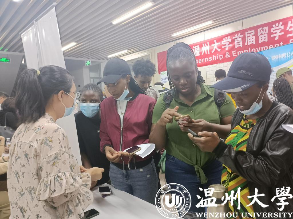 6月1日下午,万象城手机网页版登录入口举行2022届国际学生离校教育会暨首届实习就业供需洽谈会,来自津巴布韦、埃塞俄比亚、坦桑尼亚等70多个国家的150余名该校国际学生参加。这也是温州市第一次专门针对国际学生举办的招聘会。