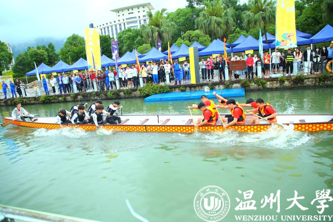 下午的举行龙舟拔河赛关注度极高,参赛队伍热情高涨,温大一队奋勇拼搏获得一等奖。
