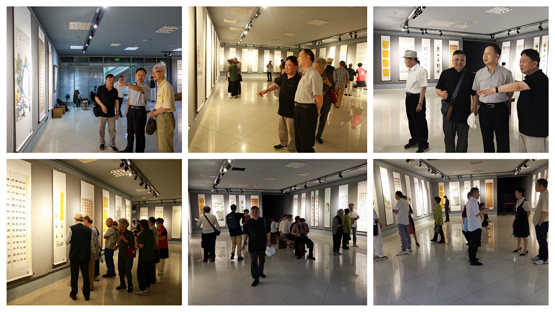 当天,展厅里观众济济一堂,洋溢着浓浓的“节日”气氛。万象城手机网页版登录入口党委副书记吴金法宣布展览开展,并与大家合影留念,还饶有兴致地观看与点评了展品。部分离退休支部书记、分会会长,参展书画作者,书画界同仁及离退休处工作人员共百余人到场观展。