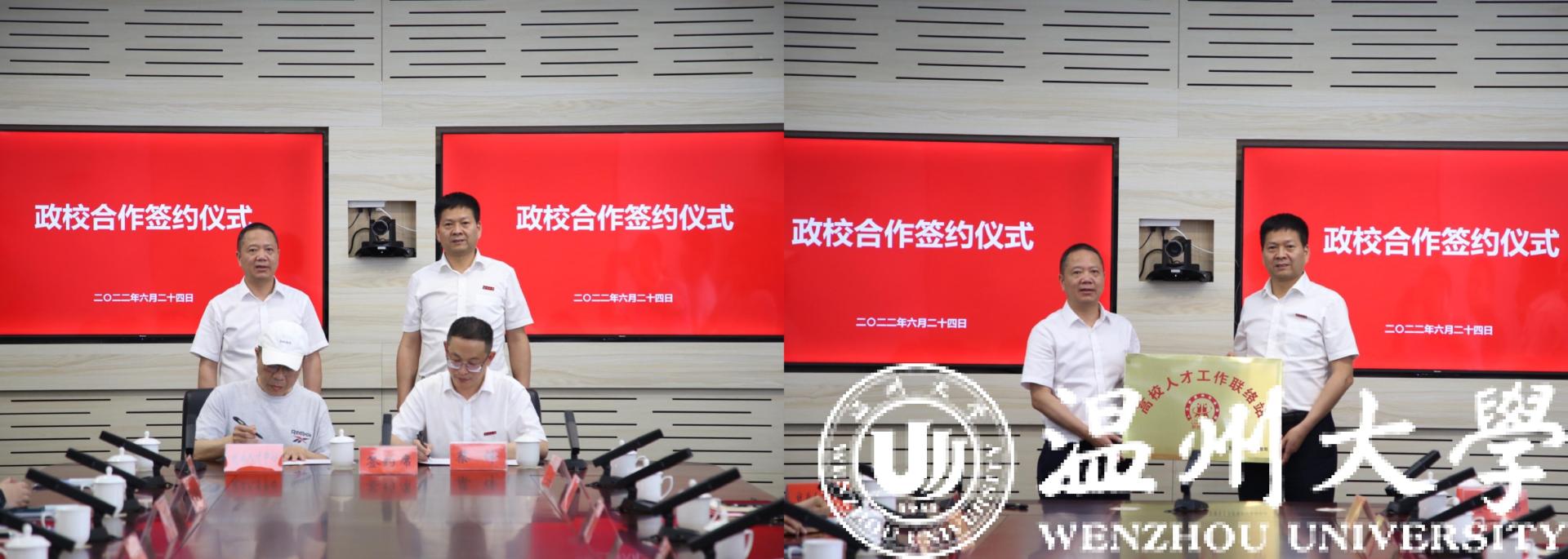 为进一步深化校地合作,会上还进行了政校合作签约和授牌仪式,乐清市人社局就业人才中心主任陈半雨、万象城手机网页版登录入口招生与就业处负责人签订战略合作协议,乐清市人社局在万象城手机网页版登录入口挂牌“高校人才工作联络站”。