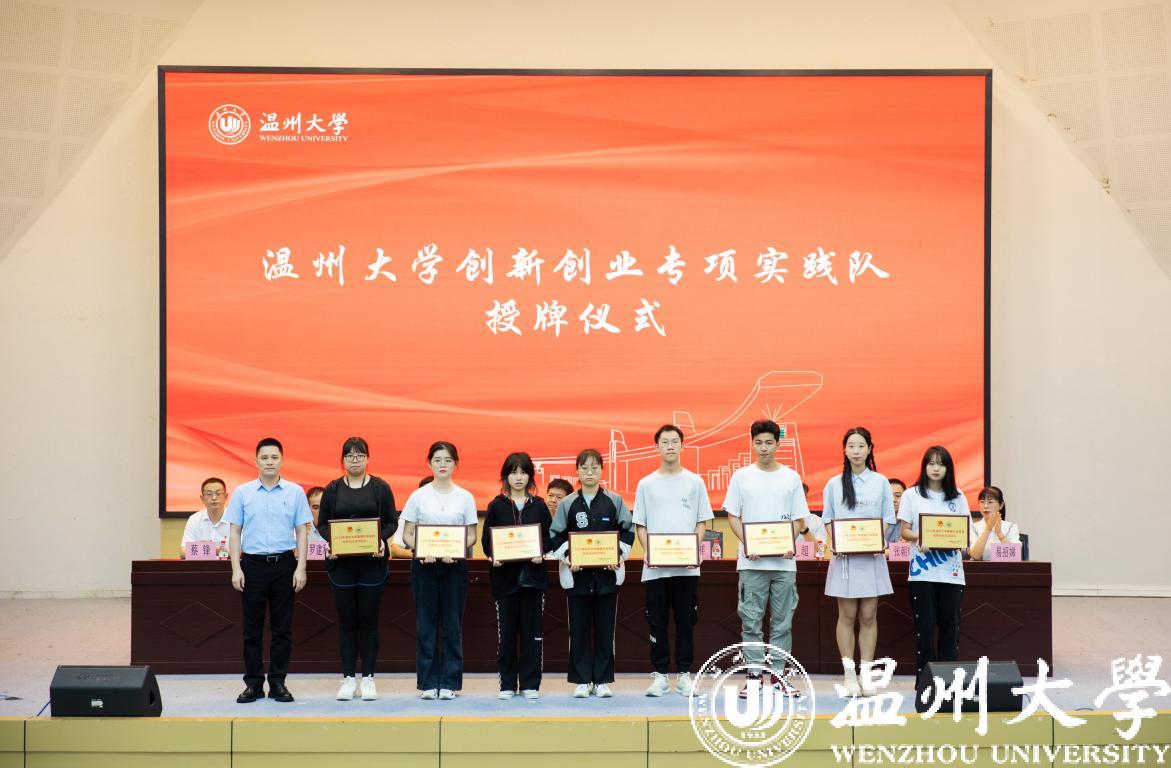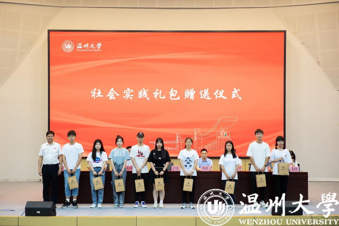 庄兴忠为各实践团队代表赠送了暑期社会实践礼包;组织部相关负责人为“万象城手机网页版登录入口创新创业专项实践队”授牌;主席台领导为2022年万象城手机网页版登录入口暑期社会实践对代表授旗;此外,在校团委实践服务中心主任冯佳婕的带领下,现场300余名社会实践队员进行了宣誓仪式。